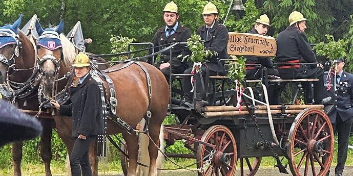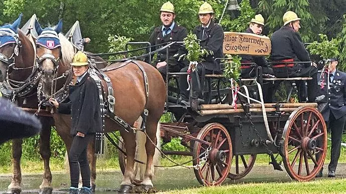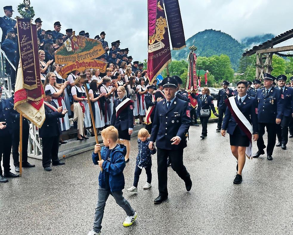 Dechsendorf Franken feiern die Alpenfeuerwehr Die Dechsendorfer waren von den anderen Teilnehmern ebenfalls begeistert. Hier die Pferdekutsche der Siegsdorfer Feuerwehr. // Michael Busch Fast 30 Uniformträger aus Dechsendorf zogen beim festlichen Umzug am Festausschuss und der Prominenz vorbei. // von Michael Busch TEILEN  04.07.2023 Dechsendorf Fröhliche Rufe vom Straßenrand. Applaus. Anerkennendes Kopfnicken. „Eure Anreise war schon ordentlich?“ Die Mitglieder der Freiwilligen Feuerwehr Dechsendorf schmunzelten. Etwas über 300 Kilometer waren es. Lediglich die Feuerwehr aus Ihringen im Breisgau hatte eine weitere Anreise zum 150-jährigen Jubiläum der Freiwilligen Feuerwehr Ruhpolding. Die Schwaben verbindet allerdings die Städtepartnerschaft mit Ruhpolding, die Dechsendorfer haben da eine andere Beziehung. „Es war eher ein Zufall“, sagt Kommandant Thomas Schneider. „Wir hatten einen Gruppenausflug hierher und besuchten unter anderem einen Hüttenabend.“ Dort waren auch ein paar Kameraden aus Ruhpolding und so kam eines zum anderen und es entwickelte sich über die Jahre eine regelrechte Feuerwehrfreundschaft. Regelmäßige Besuche, Austausch über die Fahrzeuge und Geräte, Einsatzzahlen, die festliche Weihe neuer „Bergfahrzeuge“. Und nun der festliche Umzug anlässlich der fast zwei Wochen andauernden Festlichkeiten. Bereits der Gottesdienst am Kurhaus unter freien Himmel beeindruckte. Hunderte Feuerwehrler aus der gesamten Region, Vertreter der Vereine Ruhpoldings, viel Prominenz, ein würdiger Rahmen für einen Gottesdienst, der sich natürlich mit der Rolle der Wehrler beschäftigte. Die Dechsendorfer fühlten sich angesprochen, als Weihbischof Bernhard Haßlberger über das Motto der Feuerwehren sprach. „Gott zur Ehr, dem Nächsten zur Wehr!“, ein Motto, das gerade heute eine hohe Bedeutung habe. Bei gutem Wetter können alle feiernDass die Feuerwehrler eine ganz besondere Truppe sind, zeigte sich gerade bei dem Gottesdienst. Denn etwa eine Viertelstunde öffnete Petrus sämtliche Schleusen und es regnete. Doch die Festbesucher blieben stand- und regenfest. Überrascht waren die Mittelfranken vom anschließenden Umzug. Offensichtlich hatte sich niemand von dem Regenguss abhalten lassen. Menschenmassen säumten die Zugstrecke durch den Kurort. „Grandios“, fand nicht nur der Dechsendorfer Kommandant. „Es ist schön, dass der Feuerwehrfamilie so viel Aufmerksamkeit geschenkt wird.“ Bürgermeister und Schirmherr Justus Pfeifer hatte genau das in seinen Dankesworten zuvor erwähnt. „Sie sind immer für uns da und kommen, wenn die Menschen in Not sind.“ Es sei keine Selbstverständlichkeit mehr in der heutigen Zeit, umso wichtiger ist es, diese Aktivitäten zu würdigen. Und das taten die Zuschauer an der Strecke. Das hatten zuvor auch schon die Besucher in der Festhalle getan, als am ersten Tag der Feierlichkeiten die Dechsendorfer von der Bühne aus und unter dem Applaus der weiteren Vereine herzlich begrüßt wurden. Feierlich überreichte eine kleine Abordnung der Dechsendorfer in Vertretung der ganzen Mannschaft ein Gastgeschenk. Fränkisches Bier und ein Korb mit Gaumenfreuden jeglicher Art aus der fränkischen Region. Thomas Schneider erklärte in seinen Grußworten die besondere Bedeutung der Beziehung zu den Ruhpoldinger Kameraden. „Wir werden immer wieder gefragt, warum wir hier nach Ruhpolding kommen?“ Es gebe doch einige andere und vor allem nähere Feuerwehren. Doch Schneider sagt: „Die Antwort ist im Grunde einfach: Wir fahren nach Ruhpolding, weil wir Freunde besuchen!“ „Wir werden wiederkommen“Die Ruhpoldinger untermauerten diese Freundschaft. So wurde eine Führung durch die Brauerei der Hofbräu Traunstein organisiert, es wurde sich ausgetauscht, zusammen gefeiert. Melissa Naschenweng zog vor allem die jungen Kameradinnen und -kameraden aus Dechsendorf, die Musik der Rauschenberger Musi machte allen Spaß. Gute 25 Jahre ist die Ruhpoldinger Wehr älter als die Dechsendorfer Wehr. Ein Jubiläum steht die nächsten Jahre nicht an. Doch die Ruhpoldinger haben etwas anderes entdeckt, das sie in ihren Kalender eingetragen haben. „Wir wollen den Berg besuchen – wenn es geht zehn Tage lang“, äußerten die Freunde aus Ruhpolding zum Abschied der Dechsendorfer. „Das lässt sich organisieren“, sagt Schneider. „Und ein wenig Rahmenprogramm lässt sich bestimmt organisieren.“