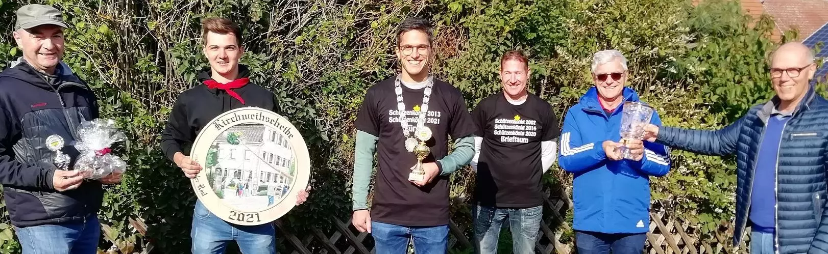 Königsschießen Fürstenhöfer zum zweiten Mal König Der Vestenbergsgreuther Schützenkönig Christian Fürstenhöfer (Dritter von links) übernahm die Königskette von seinem Vorgänger Klaus Meyer (Dritter von rechts); links der Sieger des Preisschießen, Gerald Kind, daneben der Gewinner der Kerwa-Scheibe, Kevin Kilian, und rechts übergibt der Stifter des Adolf-Wedel-Pokals die Trophäe an den Gewinner Rudolf Fürstenhöfer. // Paul Frömel von Paul Frömel TEILEN  15.10.2021 Vestenbergsgreuth Zum zweiten Mal nach 2013 heißt der Vestenbergsgreuther Schützenkönig Christian Fürstenhöfer. Coronabedingt in kleinem Rahmen und nicht wie sonst üblich im voll besetzten Festzelt übergab sein Vorgänger Klaus Meyer am Kirchweihmontag die Königskette an Fürstenhöfer, die dieser mit einem 83-Teiler vor Stefan Klein und Wolfgang Möhring errungen hatte. Meyer, gleichzeitig Vorsitzender des Sportschützenvereins Vestenbergsgreuth, freute sich über die Beteiligung von fast 70 Schützen am Königsschießen am Wochenende vor der Kirchweih und gab die Gewinner der weiteren Wettbewerbe bekannt.Beim Preisschießen hatte Gerald Kind die Nase vorn, die Kerwa-Scheibe errang Kevin Kilian, und den Adolf-Wedel-Pokal, den er aus den Händen des Stifters entgegennehmen durfte, sicherte sich Rudolf Fürstenhöfer mit einem 26-Teiler, dem besten Schuss des gesamten Kerwaschießens. Paul Frömel