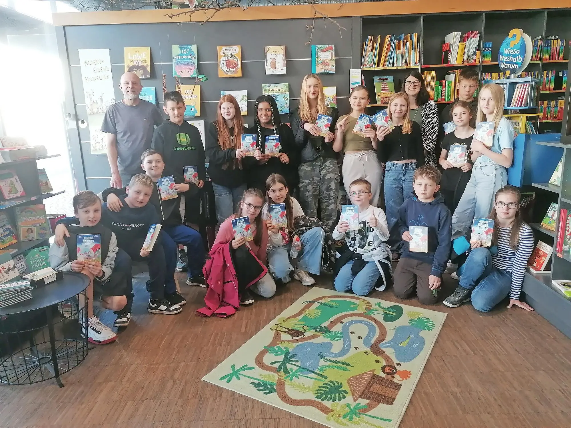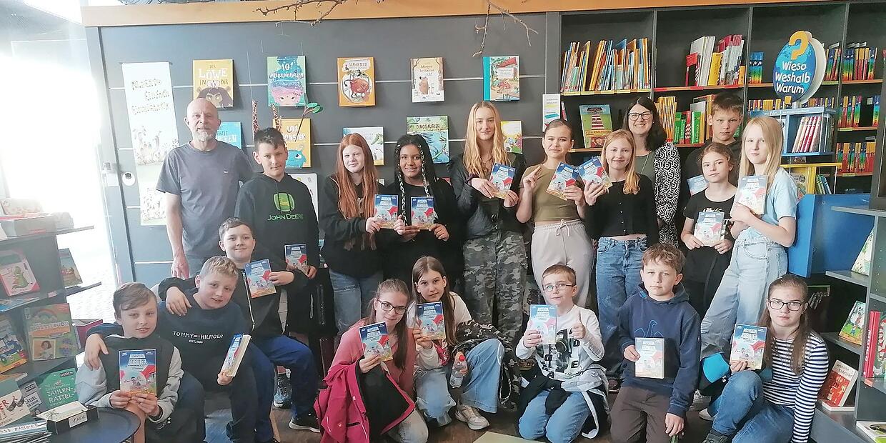Buchhandlung Geschenkte Geschichte Die Schüler der Ritter-von-Spix-Schule besuchten die „Bücherstube“ Höchstadt. // Michael Ulbrich von Redaktion TEILEN  28.06.2024 Höchstadt a. d. Aisch Die Schülerinnen und Schüler der fünften Klassen der Ritter-von-Spix-Schule Höchstadt hatten ein besonderes Erlebnis in der örtlichen „Bücherstube“. Der Buchhändler Michael Holz überraschte die Kinder zum „Welttags des Buches“, indem er jedem von ihnen das Buch „Mission Roboter – Ein spannender Fall für die Glücksagentur“ von Anke Girod schenkte. Die strahlenden Gesichter der Schülerinnen und Schüler sprachen Bände, als sie ihr eigenes Exemplar des spannenden Abenteuers in den Händen hielten. Doch damit nicht genug: Holz entführte die Kinder in eine faszinierende Geschichte, die er gemeinsam mit ihnen erfand. Mit viel Engagement und Kreativität nahm er die jungen Leser mit auf eine Reise voller Abenteuer und Geheimnisse. red