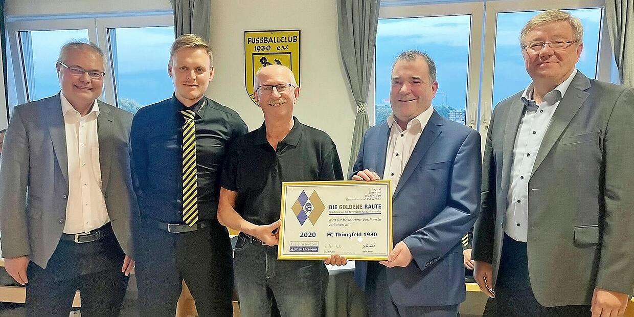 Eine große Ehre wurde dem FC Thüngfeld bei der Generalversammlung zuteil. Der Bayerische Fußballverband (BFV) verlieh dem im Kreis Bamberg ansässigen Verein die „Goldene Raute“ zum zweiten Mal, und zwar für erstklassige Arbeit in den Bereichen Ehrenamt, Jugendarbeit, Breitensport und Prävention.