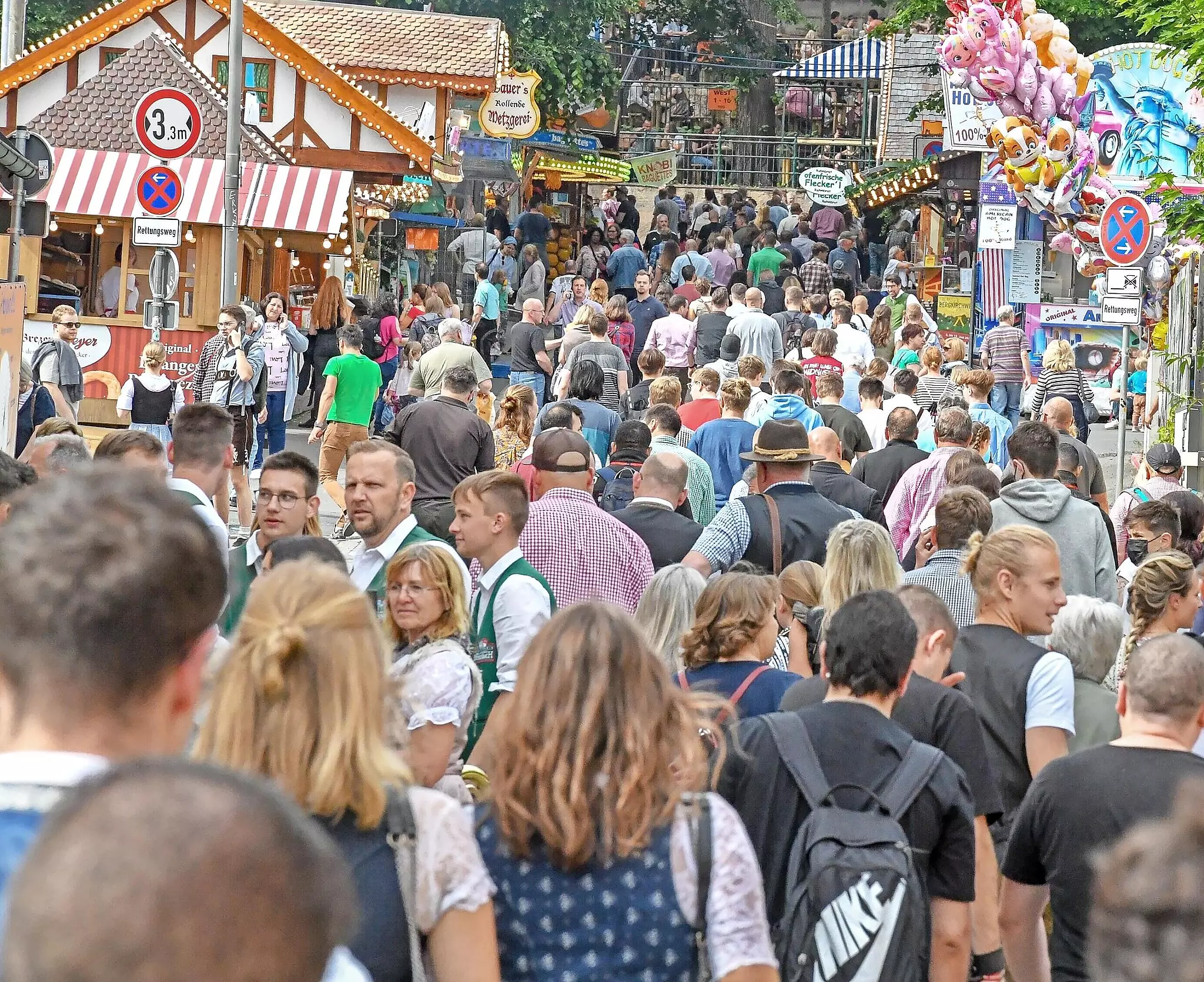 Einsätze Maßkrüge und Fäuste flogen: Berg-Wochenende fordert die Polizei Die Erlanger Bergkirchweih zog – wie hier beim Bieranstich – die Besucher am Wochenende in Scharen an. // Ronald Rinklef TEILEN  12.06.2022 Erlangen Schönes Wetter sorgte dafür, dass der Berg am Freitag und am Samstag ein Magnet für die Besucher war. Die Plätze waren ausgebucht. Die Polizeieinsätze am Freitag hielten sich in Grenzen, wie dem Polizeibericht zu entnehmen ist. Eine 15-jährige Jugendliche wurde einem Beamten gegenüber aggressiv und stieß ihn gegen die Brust, weshalb er eine Treppe hinunterstürzte. Er wurde leicht verletzt. Das Mädchen hatte 2,0 Promille Alkohol intus. Bereits nach dem offiziellen Bergende gegen 23.30 Uhr erlaubte sich ein bislang Unbekannter einen äußerst schlechten Scherz. Während eines Rettungsdiensteinsatzes im Kitzmanngarten, wurde dem Sani tätsteam ein Defibrillator gestohlen (siehe Artikel rechts). Als der vermeintliche Dieb den Festplatz verlassen wollte, wurde ihm das Gerät von einen Rettungsteam wieder abgenommen. Dem unbekannten Mann gelang noch vor Eintreffen der Polizei die Flucht. Ein Strafverfahren wegen Diebstahls wurde eingeleitet.Beim „Nachfeiern“ in der Stadt waren am Freitag sehr viele Personen unterwegs. Im Stadtzentrum kam es zu insgesamt fünf Körperverletzungsdelikten. Im Resümee sind alle Vorfälle ähnlich. Zuweilen stark betrunkene Partygänger gerieten wegen Nichtigkeiten in Streit. Die Konflikte wurden abschließend mit Fäusten ausgetragen. In keinem der Fälle kamen gefährliche Gegenstände wie z.B. Krüge oder Flaschen zum Einsatz. Der Samstag war der zehnte Tag der Bergkirchweih und aus Sicht der Polizei der bislang ereignisreichste. Im Gegensatz zu den vorangegangen Tagen, waren bei Polizeieinsätzen ab Nachmittag bereits erhebliche Alkoholsierungen festzustellen. Unter anderem kam es zu schwerwiegenden Körperverletzungsdelikten.Um kurz nach 17 Uhr gerieten zwei Personengruppen auf dem Festgelände aneinander. Zwei junge Männer schlugen mit Fäusten gemeinschaftlich auf einen 23-Jährigen ein. Einer der Angreifer griff zudem zum Maßkrug. Dem Geschädigten wurde mit dem Krug ins Gesicht geschlagen. Das Opfer erlitt eine Platzwunde an der Lippe. Die Schläger waren mit 1,7 und 2,3 Promille deutlich alkoholisiert. SchnittwundenGegen 21.15 Uhr schlug im westlichen Berggelände eine 28-Jährige nach einem Streit mit einem Maßkrug um sich. Zunächst versetzte die Frau einem Mann mit dem Krug einem Schlag gegen den Kopf. Der Krug ging dabei zu Bruch. Als Festbesucher schlichtend eingriffen, verletzte die 28-Jährige zwei weitere Männer mit dem kaputten Maßkrug. Die beiden Männer erlitten Schnittwunden an den Händen. Die drei Verletzten wurden mit stark blutenden Wunden am Kopf bzw. an den Händen in Krankenhäuser gebracht. Die Angreiferin hatte 0,8 Promille intus. Um 22 Uhr beleidigte ein 23-jähriger Festbesucher in der Bayreuther Straße eine Polizeistreife. Der Mann urinierte im Vorfeld verbotswidrig in der Öffentlichkeit. Bei der Personalienfeststellung rastete der junge Mann aus. Ein Alkoholtest ergab 2,4 Promille. Lange Schlangen vor BarsUm 22.15 Uhr geriet auf einem Bierkeller ein Festbesucher aus der Schweiz mit einer feiernden Gruppe aus England aneinander. Es kam zu gegenseitigen Faustschlägen. Im Resultat trugen drei Beteiligte erhebliche Verletzungen davon. In der gesamten Innenstadt waren ab 22 Uhr sehr viele Menschen unterwegs. Die Bergabgänger suchten Zugang zu Diskotheken und Bars oder verweilten mit To-Go-Getränken auf den Plätzen und Straßen. Vor einigen Lokalitäten bilden sich lange Warteschlangen am Einlass. Fünf Männer schlagen zuUm 2 Uhr kam es vor einer Disco in der Nürnberger Straße zu einer handfesten Auseinandersetzung. Einem uneinsichtigen, mit 1,3 Promille alkoholisierten 31-Jährigen wurde der Zugang zur Diskothek verweigert. Es kam zum Streit mit dem Sicherheitspersonal. Gegen 2.15 Uhr verhielt sich ein 47-Jähriger in einem Schnellrestaurant am Hugenottenplatz aggressiv. Als Polizeibeamte dem Mann einen Platzverweis aussprachen, schlug der 47-Jährige mit der Faust nach einem Beamten. Der Polizist wurde nicht getroffen. Der renitente Mann wurde in Gewahrsam genommen. Er war mit 1,4 Promille alkoholisiert. Bereits nach 4 Uhr wurde ein 28-Jähriger am Hugo nach einem Streit mit einer Gruppe sprichwörtlich zusammengeschlagen. Bis zu fünf bislang unbekannte Männer schlugen zunächst gemeinschaftlich auf das Opfer ein. Als der 28-Jährige am Boden lag, wurde er weiter mit Füßen getreten. Der Geschädigte erlitt eine Platzwunde im Gesicht. Die Tätergruppe flüchtete noch vor Eintreffen der Polizei. Es wird wegen gefährlicher Körperverletzung ermittelt. In diesem Fall werden Zeugen gesucht. Hinweise unter Telefon 09131/760-114. Aus Gleisbett gezogenGegen 17.15 Uhr hatte ein 55-Jähriger aus Schweinfurt am Hauptbahnhof wörtlich „Glück im Unglück“. Nach derzeitigen Erkenntnissen stand der Mann am Bahnsteig offenbar zu nah an der Bahnlinie. Mit Einfahrt eines Zuges wurde der 55-Jährige ins Gleisbett gezogen. Neben einer kaputten Hose, erlitt der Mann glücklicherweise nur eine leichte Verletzung am Bein. Er befand sich offenbar auf der Rückreise nach einem Bergbesuch. Der 55-Jährige stand mit 2,3 Promille deutlich unter Alkoholeinfluss.