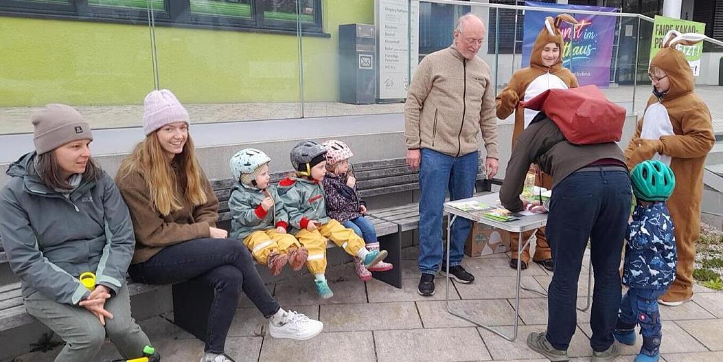 Mit einer ungewöhnlichen Aktion haben Jugendliche des Aktionskreises für eine Faire Welt e.V. am Karsamstag auf Missstände im Kakaoanbau aufmerksam gemacht: Als Osterhasen verkleidet demonstrierten sie von 10 bis 12 Uhr am Rathausplatz für faire Preise und gegen ausbeuterische Arbeitsbedingungen und sammelten Unterschriften für ihre Belange.