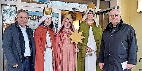 Der Empfang aller 100 Sternsinger in Höchstadt auf dem Marktplatz durch Bürgermeister Gerald Brehm gab auch heuer den Startschuss zu der Aktion. In der Außenstelle des Landratsamtes erfolgte wie jedes Jahr der letzte Einsatz der Höchstadter Sternsinger. Laura Thurn, Luca Auinger und Franziska Sailer überbrachten den Segen Gottes, ebenso wie im Kreiskrankenhaus, im Altenheim und im Wohnhaus für Demenzkranke und in der evangelischen St.-Oswaldskirche in Lonnerstadt. Für die Einwohner von Ailsbach gab es einen gemeinsamen Segen vor dem Hirtenhaus.
