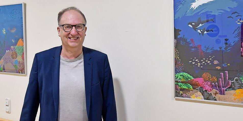 Professor Joachim Wölfle, Direktor der Kinderklinik, eröffnete kürzlich offiziell die Ausstellung im Beisein der jungen Künstlerinnen und Künstler, der Lehrkräfte sowie einiger Eltern. „Für unsere Patientinnen und Patienten kann das Uniklinikum Erlangen immer auch ein Ort der Ungewissheit sein, ein bisschen so wie die Unterwasserwelten auf den ersten Blick. Dann schaut man aber genauer hin und entdeckt die bunten Tiere oder Korallen, die etwas von dieser Ungewissheit und möglichen Ängsten nehmen“, sagte Wölfle.