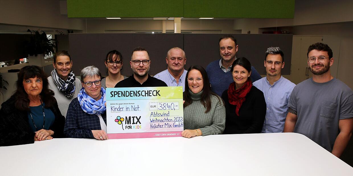 Abtswind – Zu Weihnachten hat die Abtswinder Firma Kräuter Mix 3840 Euro an den gemeinnützigen Verein Mix for Kids gespendet. Statt sich für einen Christbaum, ein Genusspaket oder eine Wintermütze mit Schal zu entscheiden, verzichteten ein Fünftel der knapp 500 Mitarbeiterinnen und Mitarbeiter auf das Weihnachtsgeschenk ihres Arbeitgebers und ließen ihren Anteil in Höhe von 40 Euro dem guten Zweck zukommen. Mit dem Geld hilft Mix for Kids sozial benachteiligten Kindern und Jugendlichen in Indien, Albanien und Deutschland. Diese und folgende Informationen sind einer Pressemitteilung des Unternehmens entnommen.
