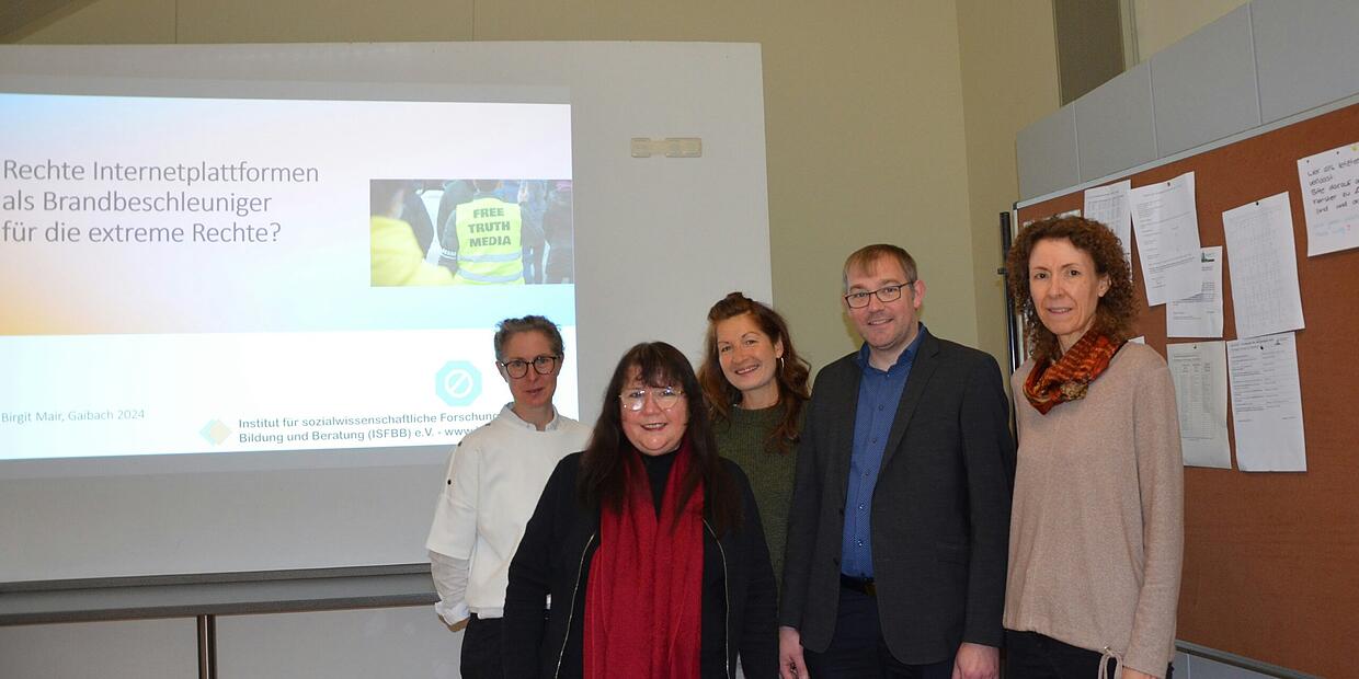 In Form von Vorträgen, Gruppenarbeiten und Diskussionen setzten sich Schülerinnen und Schüler z.B. mit der Definition von "extrem rechts" und den Kennzeichen von Populismus auseinander, wurden für einschlägige Begrifflichkeiten und Symbole sensibilisiert und erfuhren, woran man Desinformation und extreme Plattformen erkennen kann. Dabei wurde auch die heutige Parteienlandschaft in den Blick genommen und kritisch hinterfragt, welche konkreten politischen und gesellschaftlichen Vorstellungen sich hinter bestimmten Formulierungen im Parteiprogramm verbergen.