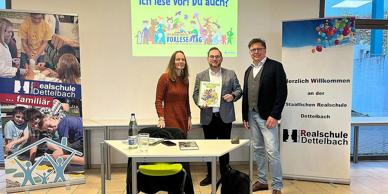 Dettelbach Vorlesetag mit Matthias Bielek Bürgermeister Matthias Bielek fesselte die Fünftklässler der Realschule Dettelbach mit seinen Geschichten über Heldinnen und Helden. // Jana Kühner von Pressemitteilung TEILEN  22.11.2024 Dettelbach Von: Petra Fackelmann (Lehrerin, Realschule Dettelbach)