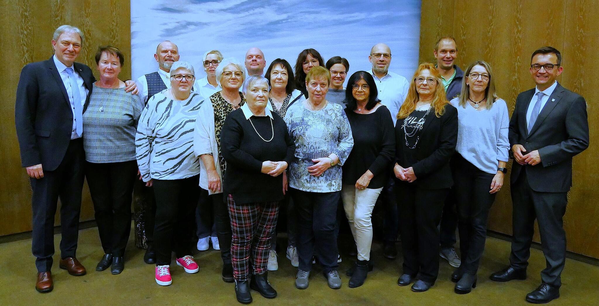 Wallenfels 780 Jahre ehrenamtliche Leistungen gewürdigt Ehrennadel Gold und Silber: Diese Männer und Frauen wurden mit der Ehrennadel in Gold oder Silber ausgezeichnet, rechts Bürgermeister Jens Korn, der die silberne Ehrennadel bekam, es gratulierte auch Dekan Detlef Pötzl (4. von links). // Susanne Deuerling von Susanne Deuerling TEILEN  vor 13 Stunden Wallenfels Wenn ein Frankenwäldler sagt „Bassd scho“, dann ist das meistens das höchste Lob, das man bekommen kann. Doch mit einem „Bassd scho“ will man es in der Stadt Wallenfels nicht bewenden lassen, wenn es heißt, verdiente Vereinsfunktionäre und Ehrenamtliche zu ehren und ihnen zu danken. Deshalb lädt die Stadt regelmäßig zu einem Bürgerempfang mit Ehrungen ein. Gerade deshalb betonte Bürgermeister Jens Korn in seiner Laudatio auch, dass alle diese Menschen, egal in welchem Verein oder Organisation, Außergewöhnliches leisten, sich einsetzen für andere, nicht nur an sich selbst, sondern an den Nächsten denken. Sie stellen sich in den Dienst der Stadt, ihrer Bewohner und Vereine und arbeiten zum Wohl der Allgemeinheit. Welche Wertschätzung ihnen zukommt, das zeigt auch die Anwesenheit von Landrat Klaus Löffler und Dekan Detlef Pötzl sowie etlichen Stadträten. Korn betonte, dass das Ehrenamt in der Stadt Wallenfels immer gewürdigt und unterstützt wird, sei es bei der Feuerwehr oder aktuell mit der Sanierung und dem Umbau der Turnhalle. Dies war auch früher so, die Stadträte und der Bürgermeister waren sich stets der Bedeutung der ehrenamtlichen Arbeit bewusst. Deshalb soll dieser Ehrungsabend auch ganz den Männern und Frauen gehören, die geehrt werden für ihre jahrzehntelange ehrenamtliche Tätigkeit, für ihr Engagement und ihre Vorbildfunktion. „Außerdem, und das ist mein Wunsch, soll es ein Gedankenanstoß sein, öfter mal Danke zu sagen, Lob auszusprechen, nicht nur für große, sondern vor allem für die kleinen Dinge im Alltag“, gab Korn den Zuhörern mit auf den Weg. Und wenn man bedenkt, dass bei 33 Geehrten insgesamt bereits 780 Jahre ehrenamtliche Arbeit zusammengekommen sind, dann sei ein großes Danke wirklich angebracht.Einen besonderen Moment bezeichnete Landrat Klaus Löffler den Ehrungsabend im Kulti in Wallenfels. Einen Empfang für die Menschen, die mit Herz und Hand und einem Riesenengagement die Stadt Wallenfels und den Landkreis Kronach jeden Tag weiterentwickeln. Ein Gefühl für die Heimat, gemeinsam die Zukunft gestalten und dafür brennen, dass nur ein Miteinander alle weiterbringt. Und dafür braucht es manchmal auch einen kleinen Ansporn, so wie ein Danke vonseiten der Stadt, ein Danke an all die, ohne die es in Vereinen, in Organisationen und im Gemeindeleben nicht gehen würde. Füreinander da sein und gemeinsam Verantwortung übernehmen, das ist es, was es braucht, um die Zukunft der Stadt und des Landkreises in die eigenen Hände zu nehmen.Das Schlusswort sprach Dekan Detlef Pötzl, der meinte, dass eigentlich schon alles gesagt sei. Aber Danken kann man nicht oft genug. Eine Kultur der Wertschätzung und Achtung verdient es, dass das Engagement auch mit einem innigen Vergelt’s Gott gewürdigt wird. Alle Geehrten seien unterschiedlich tätig, sie haben unterschiedliche Funktionen in der Gesellschaft und der Kirche inne, aber auf alle kann man stolz sein. „Macht halt bitte weiter so und motiviert auch den Nachwuchs“, bat Pötzl zum Schluss. Zusammen mit den Vertretern der Fraktionen, Andreas Buckreus (SPD), Bernd Stöcker (CSU) und Markus Schön (FW) nahm Bürgermeister Jens Korn die Ehrungen vor. Jeder der Geehrten, egal ob mit Gold, Silber oder Bronze ausgezeichnet, bereichert das Leben in der Stadt und damit das Leben der Menschen, die hier leben. Sie alle wurden von den Vereinen und Organisationen vorgeschlagen, in denen sie aktiv sind. Das zeigt auch von der großen Wertschätzung. Musikalisch umrahmt wurde der Abend vom Musikverein Wallenfels unter der Leitung von Yvonne Deckelmann. All den zu Ehrenden, die verhindert waren, werden die Ehrennadeln nachgereicht.Folgende Bürger wurden mit der goldenen Ehrennadel ausgezeichnet: Alfred Klinger (FF Wolfersgrün, Fähnrich seit 40 Jahren), Anita Schnabrich (Seniorenclub inklusive Besuchsdienst seit 40 Jahren) und Marga Müller (Tennisverein Wallenfels, Buchhaltung seit 43 Jahren).Die silberne Ehrennadel erhielten: Jens Korn (Heimatgeschichtlicher Arbeitskreis, 2. Vorsitzender 27 Jahre), Dieter Müller (Heimatgeschichtlicher Arbeitskreis, Kassier 27 Jahre), Ulla Barthel (VdK Wallenfels, 1. Vorsitzende 25 Jahre), Bernhard Müller (Gesangverein Cäcilia, Notenwart 26 Jahre), Gisela Hänel (Tennisverein Wallenfels, Schriftführer 27 Jahre), Michael Stumpf (Unterstützungskasse, Hilfskassier 14 Jahre, Kassier 21 Jahre), Peter Düthorn (Freie Wähler, Schriftführer 31 Jahre), Peter Hänel (Freie Wähler, 1. und 2. Vorsitzender 31 Jahre) und Burkhard Zeuß (Freie Wähler, Kassier 31 Jahre).Mit der bronzenen Ehrennadel ausgezeichnet wurden: Daniel Brehm (FWV Schnaid, 1. Obmann seit 20 Jahren), Christine Fischer (FWV Schnaid, Kassier 19 Jahre), Sieglinde Stumpf (FWV Schnaid, Werbewart 20 Jahre, Schriftführerin 10 Jahre), Ute Schlee (VdK Wallenfels, 2. Vorsitzende 15 Jahre), Christopher Zeuß (VdK Wallenfels, 3. Vorsitzender 18 Jahre), Brigitte Stöcker (VdK Wallenfels, Kassier 18 Jahre), Elke Gampert (VdK Wallenfels, Schriftführerin 16 Jahre), Marianne Betz (VdK Wallenfels, Beisitzerin 23 Jahre), Elisabeth Schneider (VdK Wallenfels, Beisitzerin 20 Jahre), Barbara Burger (VdK Wallenfels, Frauenbetreuerin 20 Jahre), Maria Rebhan (VdK Wallenfels, Jugend- und Frauenbetreuerin 15 Jahre), Steffen Stumpf (Dorfgemeinschaft Schnaid, Kassier 15 Jahr), Elfriede Zeuß (Gesangverein Cäcilia, Kassier 15 Jahre), Diana Schütz (Frankenwaldfreunde Wolfersgrün, 1. und 2. Vorsitzende 18 Jahre), Harald Schneider (MV Wallenfels, Kassier 17 Jahre), Christel Schmitt (Seniorenclub inklusive Besuchsdienst seit 19 Jahren), Barbara Hahn 
