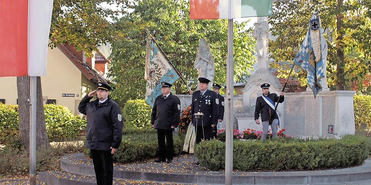Am Kriegerdenkmal gedachte man nach der Kranzniederlegung aller verstorbenen und gefallenen Kameraden. // Susanne Deuerling