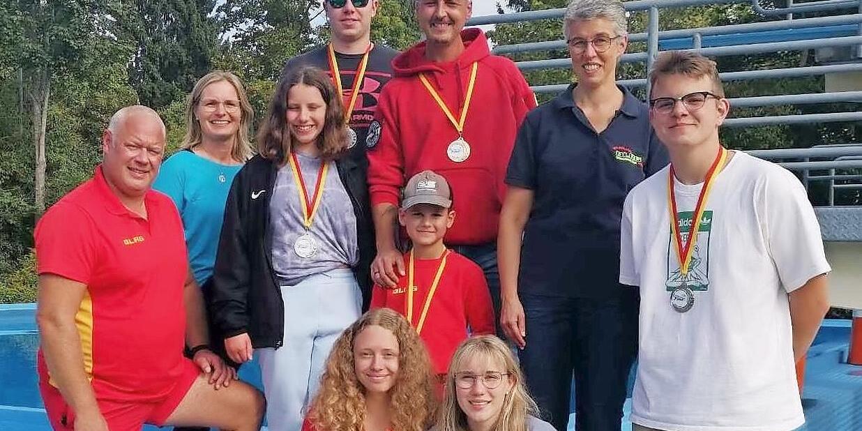 Die erfolgreichen Küpser Rettungsschwimmer mit ihren Betreuern und Kampfrichtern nach der Siegerehrung
