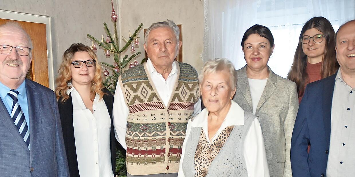 Bürgermeisterin Angela Hofmann gratulierte dem Jubelpaar zum Jubiläum und dankte für deren Treue zueinander und zu ihrer Heimatstadt Kronach. Bernd Steger entbot die Glückwünsche von Landrat Klaus Löffler als dessen Stellvertreter des und wünschte Gottes Segen und noch viele Jahre gemeinsamen Lebens. Als Nachbar und Stadtrat von Kronach gratulierte Ralf Völkl zu dem außergewöhnlichen Ehejubiläum. Zur Gratulantenschar zählten ferner zwei Söhne, fünf Enkelkinder und zwei Urenkel. eh