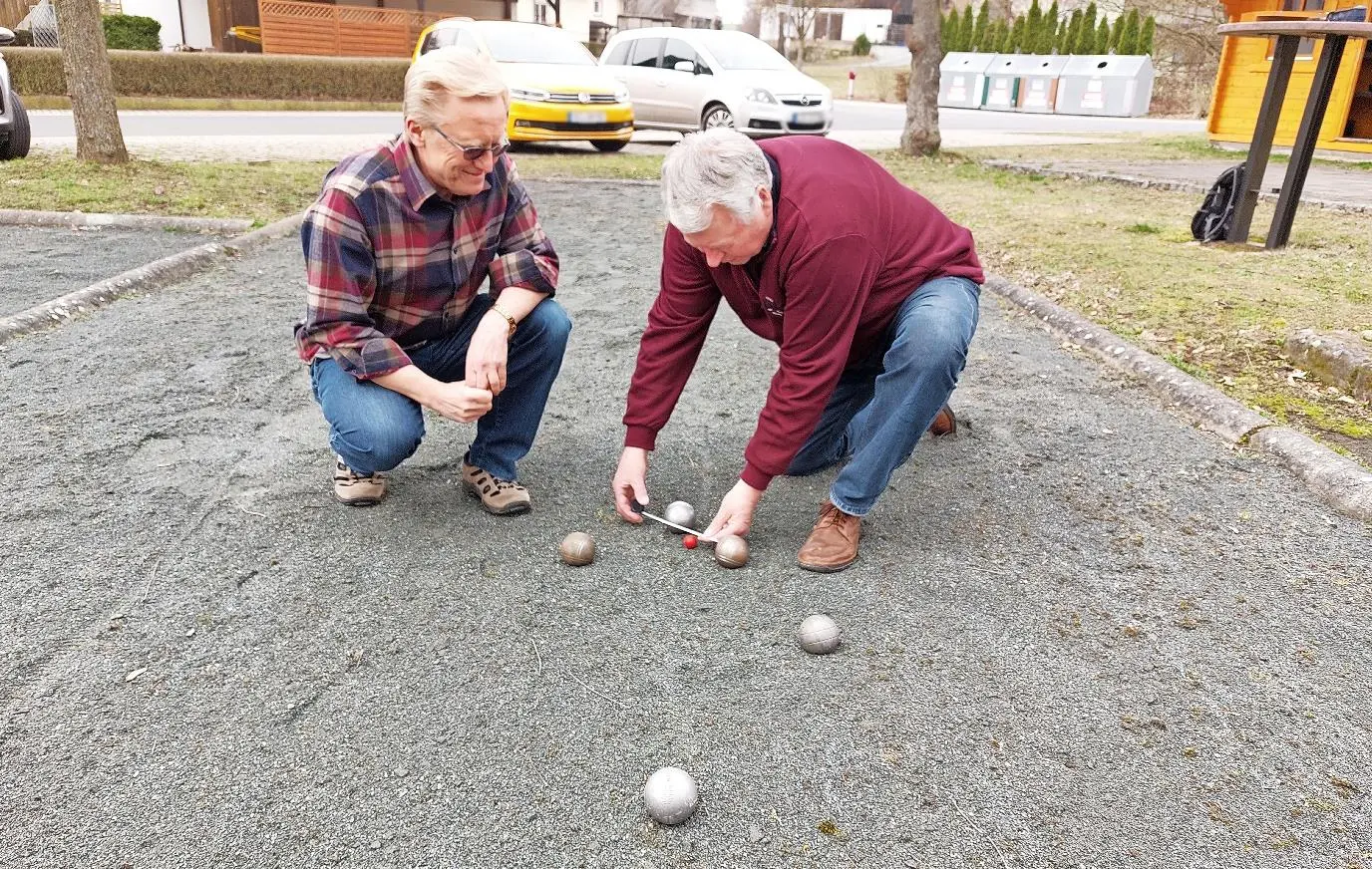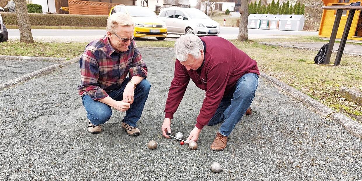 Tüschnitz Ein kommunikativer Sport Karl-Heinz Sladek (links) und Wolfgang Franz sind vom Boulespiel begeistert. Bei der Punktevergabe kommt es oft auf Millimeter an. // Alexander Müller von Alexander Müller TEILEN  22.03.2022 Tüschnitz Wenn sich zwischen März und Oktober am Samstagnachmittag Spielbegeisterte ab 15 Uhr rund zwei Stunden lang am Tüschnitzer Dorfplatz treffen, vereint sie die Freude am Boulespiel. Auf der vor 20 Jahren von der örtlichen Vereinsgemeinschaft geschaffenen, landkreisweit einzigen Anlage rollen dann die 700 Gramm schweren Stahlkugeln. Der Tischtennisclub, der seit 60 Jahren an den grünen Platten oberfrankenweit erfolgreich unterwegs ist, hat 2019 eine eigene Boule-Sparte gegründet. Auch wenn die Pandemie die Aktivitäten phasenweise gebremst hat, finden sich doch regelmäßig fünf, sechs Interessierte zusammen, die auf der Sandbahn gemeinsam spielen.Nun möchten TTC-Vorsitzender Karl-Heinz Sladek und Spartenleiter Wolfgang Franz mehr Interessierte gewinnen und zugleich auf die Freizeitanlage im Tüschnitzer Ortskern hinweisen, auf der auch Schach und Tischtennis gespielt werden kann.Beim Boule jedenfalls, das auch als Petanque und in seiner italienischen Variante als Boccia bekannt ist, geht es für zwei Mannschaften darum, insgesamt sechs Kugeln auf dem vier mal 15 Meter großen Spielfeld möglichst nahe an eine kleine Zielkugel, dem Schweinchen, zu platzieren. Den Reiz des Spiels machen viele taktische Möglichkeiten aus – so kann man gegnerische Kugeln wegschießen, die Lage des Schweinchens verändern oder es mit eigenen Kugeln schützen.Boule ist ein kommunikativer Sport, aber auch einer, bei dem Respekt, Ehrgeiz und Zusammenhalt eine wichtige Rolle spielen. Die beiden TTC-Verantwortlichen können sich auch vorstellen, dass Geflüchtete Gefallen an dem Freizeitsport und so leicht neue Kontakte finden könnten. Weitere Informationen gibt es bei TTC-Vorsitzendem Karl-Heinz Sladek (Telefon: 0160/7134714), bei Spartenleiter Wolfgang Franz (Telefon: 0176/23520305) oder unter www.ttc-tueschnitz.de. am