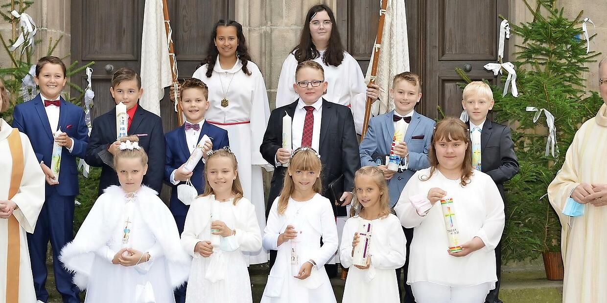 Nach einer besonderen Vorbereitungszeit haben in der Stadtpfarrkirche St. Johannes der Täufer in Kronach an zwei Samstagen 36 Kinder ihre Erstkommunion gefeiert. Pfarrer Thomas Teuchgräber erinnerte die Kommunionkinder zu Beginn der Festgottesdienste mit dem Entzünden ihrer Kommunionkerzen an ihre Taufe, bei der ihre Freundschaft mit Jesus begann. Tauf- und Kommunionkerze seien für Christen Zeichen für Jesus Christus, der das Licht für die Welt sei. Das Motto, das die Erstkommunionkinder auf dem Weg ihrer Vorbereitung begleitete, lautete: „Jesus ist wie ein Leuchtturm – er leitet mich durchs Leben“.