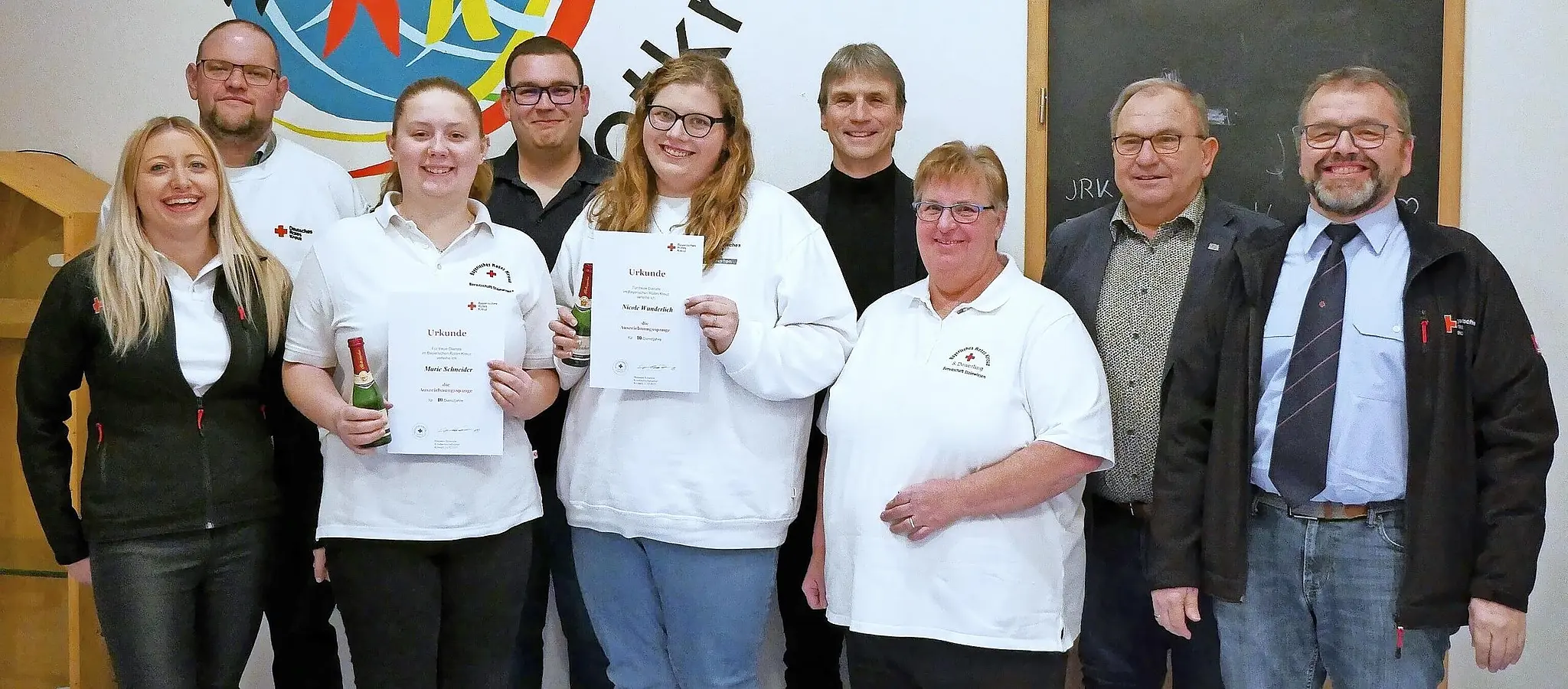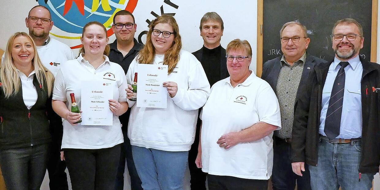 Rot-Kreuz-Bereitschaft Jugendrotkreuz neu belebt Das neue Leitungsteam und die Geehrten der Rot-Kreuz-Bereitschaft Steinwiesen: (von links) Carina Kotschenreuther, Thomas Reißig (neu), Marie Schneider, Fabian Wunderlich (neu), Nicole Wunderlich (neu), Roland Beierwaltes, Susanne Deuerling, 3. Bürgermeister Thomas Reißig sowie Stefan Deuerling. // Susanne Deuerling von Susanne Deuerling TEILEN  27.02.2025 Steinwiesen Eine gute Nachricht vermeldete das Leitungsteam bei der Jahreshauptversammlung der Rotkreuz-Bereitschaft Steinwiesen: Die Jugendrotkreuzgruppe konnte neu belebt werden. Unter der Leitung von Nicole Wunderlich als Gruppenleiterin, Nadine Deckelmann und Marie Schneider wurde eine kleine Werbekampagne gestartet. Jetzt kann man bereits auf eine Gruppe von acht Kindern und Jugendlichen im Alter von neun bis 15 Jahren stolz sein. Schon in den ersten Gruppenstunden zeigte sich die Begeisterung der Jungen und Mädchen. Für dieses Jahr planen die Leiterinnen Stunden zum Thema Reanimation an der Puppe, eine Materialrallye am KTW, Beteiligung am Sommerfest und ein Besuch in der Integrierten Leitstelle (ILS) in Ebersdorf mit einem Besuch im Kreisverband Kronach. Daneben gibt es natürlich auch viel Spaß, Spiel und den einen oder anderen Ausflug zu Fuß oder mit dem Rad. Wer mitmachen will, ist willkommen. Gruppenstunden sind jeweils am 2. Montag im Monat, die nächste mit einem Spielenachmittag am 10. März um 16 Uhr. Bei Interesse kann man sich natürlich jederzeit an die Bereitschaftsleitung oder an die Leitung des Jugendrotkreuzes wenden. Mitmachen kann jedes Kind ab sechs Jahre, bei Geschwisterkindern auch jünger.Bei den Neuwahlen wurde dem Vorschlag des Leitungsteams einstimmig stattgegeben. Somit werden auch für die nächste Wahlperiode Martin Müller als Bereitschaftsleiter und Susanne Deuerling als seine Stellvertreterin fungieren. Neu im Team ist als 2. Stellvertreter Thomas Reißig. Als Schriftführer und Statistiker ist weiterhin Stefan Deuerling zuständig und für die Finanzen Michael Wunder. Neu ist der Technische Leiter, diesen Posten hat nun Fabian Wunderlich inne. Die Leitung der Jugendarbeit übernimmt Nicole Wunderlich. Ehrungen und BerichteDie stellvertretende Kreisbereitschaftsleiterin Carina Kotschenreuther ehrte aktive Mitglieder der Bereitschaft. Geehrt wurden für zehn Jahre Tim Michel, Nicole Wunderlich und Marie Schneider. Besonders die beiden Frauen bringen sich stark in die Bereitschaft ein und haben auch die Leitung der neuen Jugendgruppe übernommen. Für den erkrankten Bereitschaftsleiter Martin Müller gab Stefan Deuerling die Berichte der Sachgebiete und im Bereich Statistik. Die Bereitschaft Steinwiesen hat 47 aktive Mitglieder und vier freie Mitarbeiter. 2024 wurden 2285 Einsatzstunden geleistet, dazu kommen zahlreiche Stunden im Hausnotruf, beim Jugendrotkreuz, Rettungsdienst und Ausbildungsstunden im Kreisverband, Besuche bei anderen Vereinen, Geburtstage, Sitzungen und Beerdigungen. Einsätze hatte man insgesamt 45, davon 24 Sanitätsdienste und drei Realeinsätze. Für Steinwiesen und Wallenfels wurden fünf Blutspendetermine für 2024 angesetzt. In Steinwiesen fanden zwei davon statt. Hier konnten 176 Spender und sechs Erstspender begrüßt werden. 14 Kameraden und Kameradinnen sowie ehrenamtliche Helfer leisteten hier 138 Stunden ehrenamtliche Arbeit. Leider ist die Spendebereitschaft in der Bevölkerung seit Jahren stagnierend. Daher appellierte Stefan Deuerling an alle, Werbung für die Blutspende zu machen. In Steinwiesen ist der nächste Termin am Freitag, 28. März, um 16.30 Uhr.Einen Überblick über die einzelnen Dienste und Einsätze gab Technischer Leiter Fabian Wunderlich. Besonders hob er den Kontingenteinsatz bei der Hochwasserkatastrophe in Augsburg und eine Auslandsrückholung aus Schladming hervor. Einige Kameraden und Kameradinnen absolvierten Lehrgänge mit sehr gutem Erfolg. So ist Thomas Reißig nun Erste Hilfe Ausbilder und Fabian Wunderlich Gruppenführer Technik und Sicherheit. Der Grundlehrgang Betreuungsdienst wurde von Tobias Michel, Marie Schneider und Nicole Wunderlich sowie der Fachlehrgang Sanitätsdienst von Tobias Michel und Marie Schneider besucht. Am 15. März ist die Wahl des Kreisbereitschaftsleiters, alle Wahlberechtigten sollten ihren Wahlvorschlag bis 3. März abgegeben haben. Außerdem wird am 22. März der Kreisvorstand Kronach gewählt, der Wahlvorschlag soll bis 10. März abgegeben werden. Einen großen Dank richtete 3. Bürgermeister Thomas Reißig an die ehrenamtlichen Rettungskräfte. Im Namen der Soldaten- und Reservistenkameradschaft Steinwiesen dankte Hauptkassier Holger Deuerling der Bereitschaft und für die Freiwillige Feuerwehr Steinwiesen sprach Roland Schneider ein Grußwort. Kreisgeschäftsführer Roland Beierwaltes ging darauf ein, dass es sehr erfreulich ist, wieder eine Jugendrotkreuzgruppe vor Ort zu haben. Susanne Deuerling