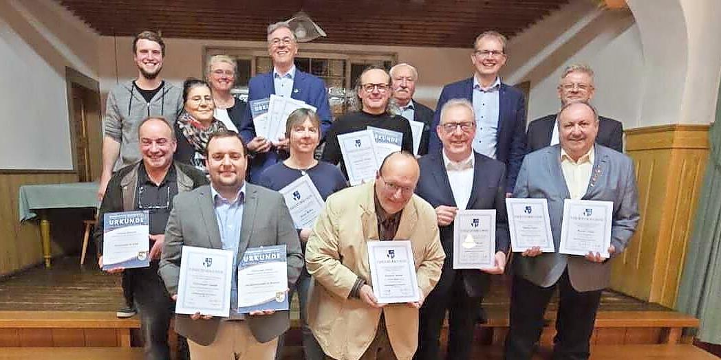 In diesem Zusammenhang ehrte der Zweite Bürgermeister zahlreiche verdiente Musikerinnen und Musiker: Christoph Jonak erhielt die Verdienstnadel des Nordbayerischen Musikbundes in Bronze für zehn Jahre Funktionärstätigkeit im Verein, Alexander Philipp wurde mit der Ehrennadel des Nordbayerischen Musikbundes für 40 Jahre aktives Musizieren ausgezeichnet und Jürgen Schaller bekam die Ehrennadel in Gold des Nordbayerischen Musikbundes für 50 Jahre aktives Musizieren überreicht. Auch Ehrendirigent Thomas Besand wurde vom Nordbayerischen Musikbund mit einer Ehrennadel für 35 Jahre aktive Dirigententätigkeit gewürdigt.
