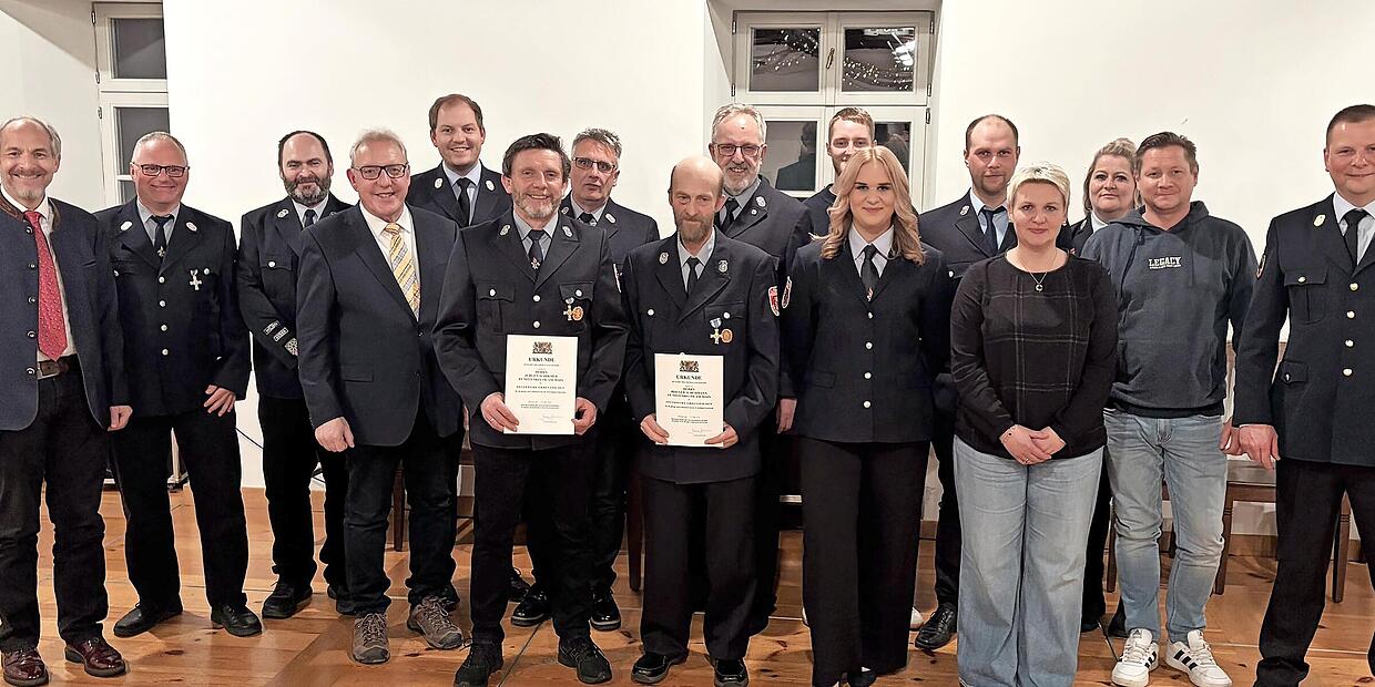 Ein weiterer Höhepunkt des Abends waren die Ehrungen für langjährigen Feuerwehrdienst. Für 40 Jahre aktiven Dienst wurden Holger Schuhmann und Jürgen Schirmer ausgezeichnet. Die Feuerwehr dankte ihnen für ihre jahrzehntelange Treue und ihren Einsatz für die Gemeinschaft.