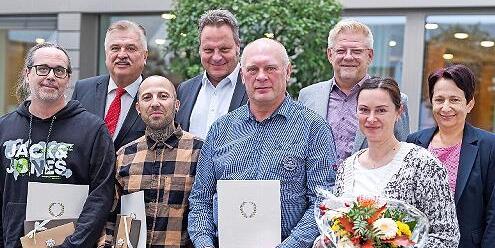 Am Klinikum Kulmbach wurden im Rahmen einer Feierstunde vier Beschäftigte für ihre 25-jährige Treue und engagierte Mitarbeit ausgezeichnet. Landrat Klaus Peter Söllner, Oberbürgermeister Ingo Lehmann, Geschäftsführerin Brigitte Angermann und Personalratsvorsitzender Frank Wilzok gratulierten ihnen und überreichten kleine Geschenke.