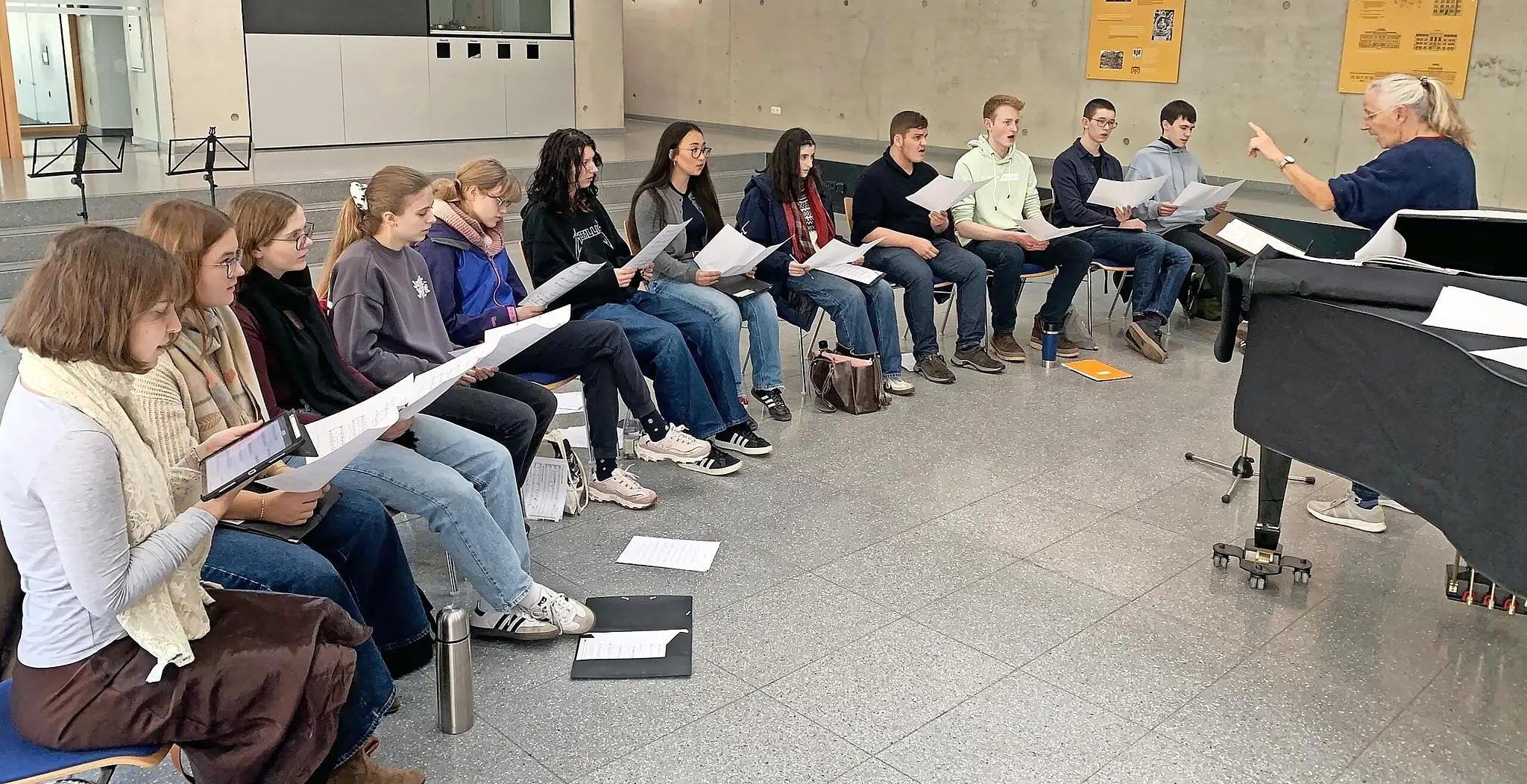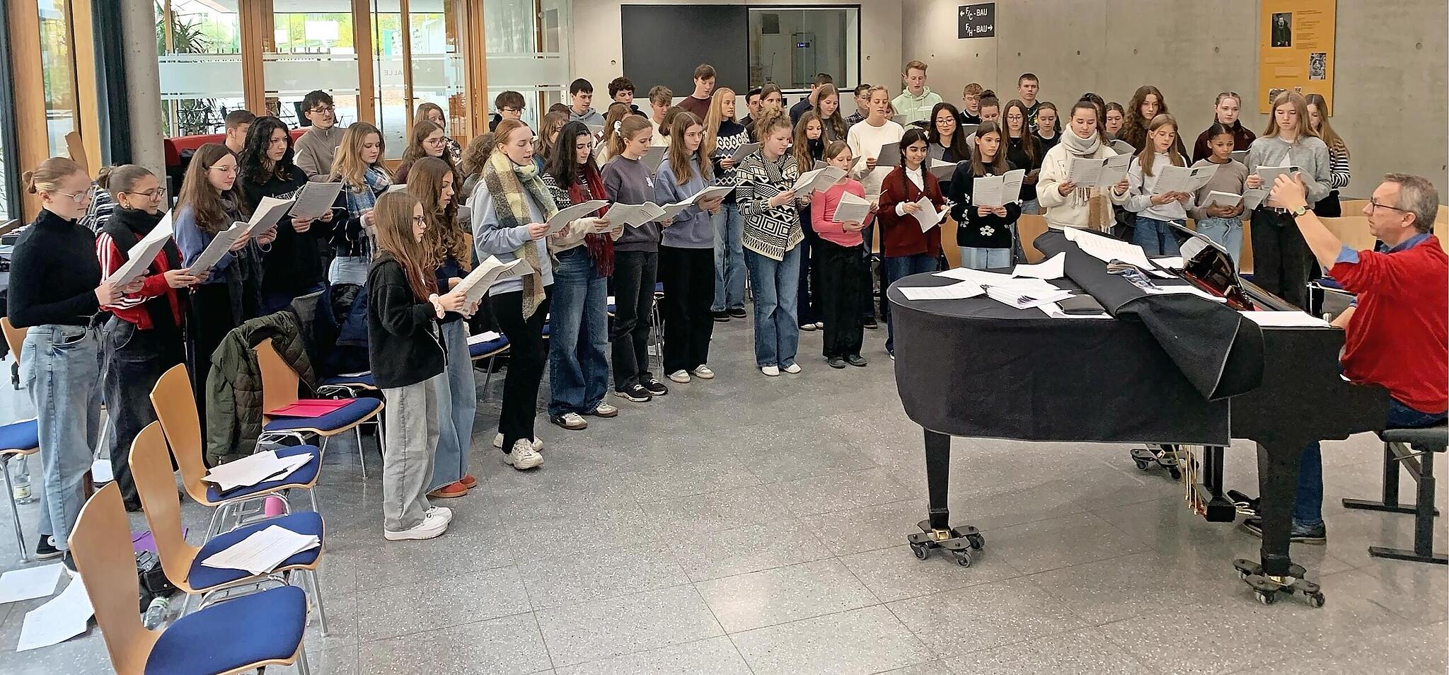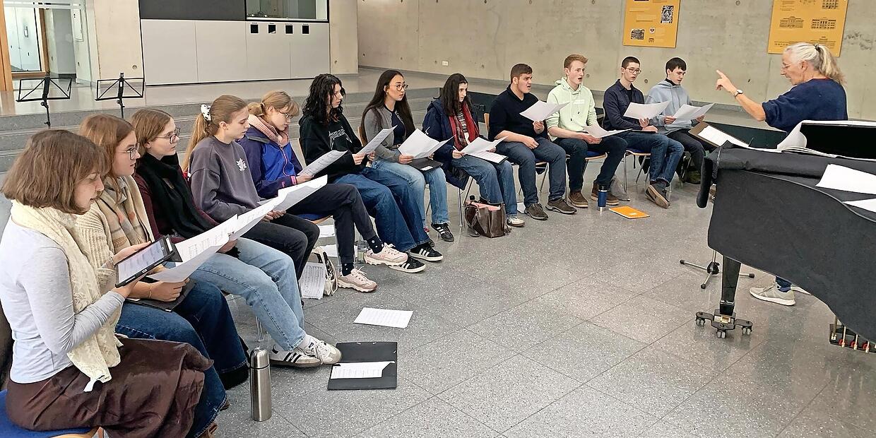 Kulmbach Lichter, Lieder, Leidenschaft Das Vokalensemble unter Leitung von Barbara Baumann studiert die Händel-Melodie „Joy to the world“ in einem anspruchsvollen Arrangement des lettischen Komponisten Vytautas Miskinis. // Hubertus Baumann TEILEN  vor 10 Stunden Kulmbach Für die Musiklehrer des Markgraf-Georg-Friedrich-Gymnasiums (MGF) ist es immer wieder ein tolles Erlebnis, wenn sich 15 Prozent aller Schülerinnen und Schüler an einem Samstag zu Intensivproben in der Schule treffen und Musik zu ihrer Herzenssache machen. Das zumindest schreibt Hubertus Baumann, der Leiter des Schulchors, in einem Pressebericht. Heuer seien über 90 Schüler an ihrem freien Samstag in der vorletzten Oktoberwoche vormittags, mittags, nachmittags, einige den ganzen Tag aktiv gewesen. Sie hätten den Liedtext „The work of christmas begins“ von Howard Thurman (1899-1981) wörtlich genommen. Vormittags arbeitete laut Mitteilung der Schulchor im Tutti und in Einzelstimmproben an seinem Adventsprogramm. Der erste Satz des Magnificat von dem Engländer John Rutter und der Chorsatz „I will light candles this christmas“ des norwegischen Komponisten Kim André Arnesen standen auf dem Programm. Nach den Schulchorproben ging das Vokalensemble mit Barbara Baumann und gleichzeitig das Instrumentalensemble mit Vera Doerfler in Arbeitsklausur. Eine Stunde später coachte Vera Doerfler die MGF-Big Band und anschließend das MGF-Saxofonensemble. Alle gingen mit einem guten Gefühl und erfüllt nach Hause, berichtete Baumann weiter. Ein eigener Probensamstag für Orchester und Unterstufenchor folgt im November. Die MGF-Musiklehrer nehmen sich die Textaussagen von Howard Thurman, der die Weihnachtsbotschaft als Auftrag für die Zukunft sieht und die Kim Arnesen so bezaubernd vertont hat, selbst zu Herzen und versuchen, sie bei ihren Schülern auch zu entfachen: „Candles of love inspire all my living“, „To make music in the heart“.Zu hören sind die Ergebnisse der Probenarbeit beim MGF-Adventskonzert am Mittwoch, 17. Dezember, ab 19 Uhr in der Petrikirche. red Der Chor lernt das Stück „I will light candles this christmas“ des Norwegers Kim André Arnesen. // Barbara Baumann