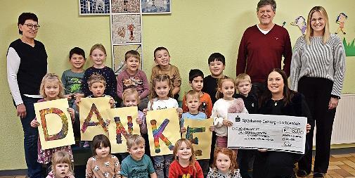 Freudiger Anlass war der Besuch des Chors Route 16-60 mit Zweiter Vorsitzender Svenja Weid und stellvertretendem Chorleiter Uwe Stegner in der Kita Grünschnabel. Sie überreichten eine Geldspende von 800 Euro. Zusammengekommen ist der Betrag aus dem Erlös des Weihnachtskonzerts des Chors, ließ Weid wissen. Für das Konzert war kein Eintritt verlangt worden. Die Besucher spendeten freiwillig einen Betrag. Kita-Leiterin Daniela Rech freute sich über die Spende. Das Geld werde zielgerichtet verwendet. Die Kinder drückten mit einem fröhlichen Lächeln ihren Dank und ihre Freude aus. Sie revanchierten sich mit Fruchtbonbons und Lachgummis für den Chor.