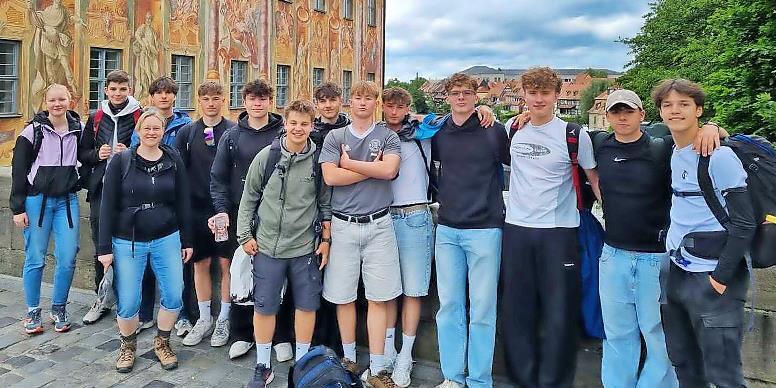Burgkunstadt Gemeinsam auf dem Weg Einen kurzen Zwischenstopp in Bamberg inklusive einer meditativen Einstimmung im Bamberger Dom – das erlebten die Schülerinnen und Schüler des P-Seminars „Jakobsweg“ bei ihrer Pilgertour mit Kursleiterin Sandra Weber (vorne links). // Christian Voll von Christian Voll TEILEN  07.08.2025 Burgkunstadt Gedanken über die Bedeutung des Pilgerns haben sich zwei Schülerinnen und zwölf Schüler im P-Seminar des Gymnasiums gemacht. Bereits in der Vorbereitungsphase wurden eine kleine Wanderung unternommen und eigene Meditationsübungen ausprobiert. Um die finale Reise möglichst erfolgreich zu gestalten, wurde als externer Berater Pfarrer Michael Thein von der Jakobusgesellschaft Würzburg hinzugezogen, der selbst geführte Wanderungen auf dem Jakobsweg leitet. In seinem Vortrag gab er den Schülern wertvolle Tipps, was man bei einem solchen Projekt beachten muss. Anschließend gingen die Teilnehmer daran, das Projekt konkret in Kleingruppen vorzubereiten, die für die Wegplanung, die Unterbringung, die Verpflegung und die Hin- und Rückreise zum Startpunkt sowie für Erste Hilfe zuständig waren. Durchgeführt werden sollten zwei Etappen auf dem Fränkischen Jakobsweg von Zapfendorf bis Burgebrach mit einer Übernachtung in Bamberg. Als es so weit war, versammelte sich das P-Seminar am Gymnasium Burgkunstadt, um in Richtung Bahnhof aufzubrechen. Von dort an nahm die Kleingruppe den Zug, um nach Zapfendorf zu gelangen. Hier begann die Suche nach der ersten Jakobsmuschel. Es dauerte auch gar nicht lange bis zu einer ersten meditativen Auszeit, das erste Gebet wurde gesprochen und das Seminar war nun bereit, den anstehenden Fußmarsch zu bewältigen. Über Berge und Hügel, durch Felder und kleine Ortschaften führte der Weg nach Hallstadt, wo die Gruppe übernachtete. Der Austausch am Abend – über Blasen an den Füßen und persönliche Eindrücke – ließ erkennen, wie sehr jeder Einzelne auf seine eigene Weise von der Erfahrung profitierte. Am nächsten Morgen brachte ein Bus die Pilger nach Bamberg. Nach einer kurzen meditativen Einstimmung im Bamberger Dom begann die zweite Etappe in Richtung Burgebrach. Der Weg war nicht minder eindrucksvoll als der am Tag zuvor. Bei einer kurzen Andacht unterwegs wurden nochmals verschiedene Entspannungsmethoden gezeigt. Am Nachmittag erreichte man schließlich Burgebrach. Die Erschöpfung war spürbar, aber ebenso auch der Stolz darüber, das Ziel gemeinsam erreicht zu haben. Nach einer kurzen Pause trat das P-Seminar mit dem Bus den Rückweg nach Bamberg an und stieg dort in den Zug zurück Richtung Heimat. Was bleibt, ist nicht nur die Erinnerung an zwei Tage auf dem Fränkischen Jakobsweg, sondern auch das Gefühl, gemeinsam etwas geschafft zu haben. red