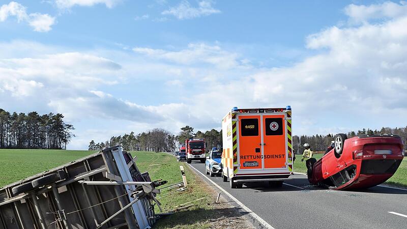 Aufgrund eines Fahrfehlers kam es am Karsamstag gegen 16.15 Uhr auf der Kreisstraße LIF 12 zwischen Wunkendorf und Modschiedel zu einem Unfall, bei dem die 58-jährige Fahrzeuglenkerin leicht verletzt wurde. Die Frau war mit einem Skoda und einem Anhänger, der mit Gerüstteilen beladen war, vermutlich wegen eines Fahrfehlers mit dem Gespann umgekippt, wobei der Skoda anschließend auf der Fahrbahn auf dem Dach und der Anhänger, der sich samt der Anhängerkupplung vom Pkw löste, auf dem Randstreifen seitlich zum Liegen kam. Die Frau erlitt relativ leichte Verletzungen. Am Skoda und dem Anhänger samt Ladung entstand Sachschaden von rund 20 000 Euro. Foto: Dieter Radziej