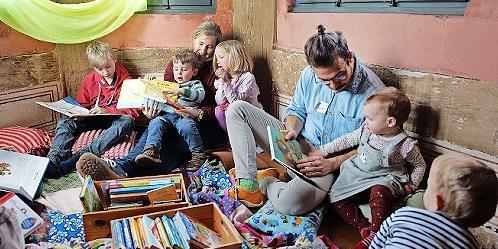 In der Kreativ-Zeit bereiteten die kleinen und großen Gäste an verschiedenen Mitmachstationen alles vor, was es rund um eine gute Party braucht: Es wurden Perlenketten gefädelt, Karten gemalt, kleine Schmuckstücke aus Ton gestaltet und Tischdecken bunt bemalt. Daneben konnten die Kinder tanzen, toben, bauen, im Bällebad spielen oder in der Kuschelecke entspannen.