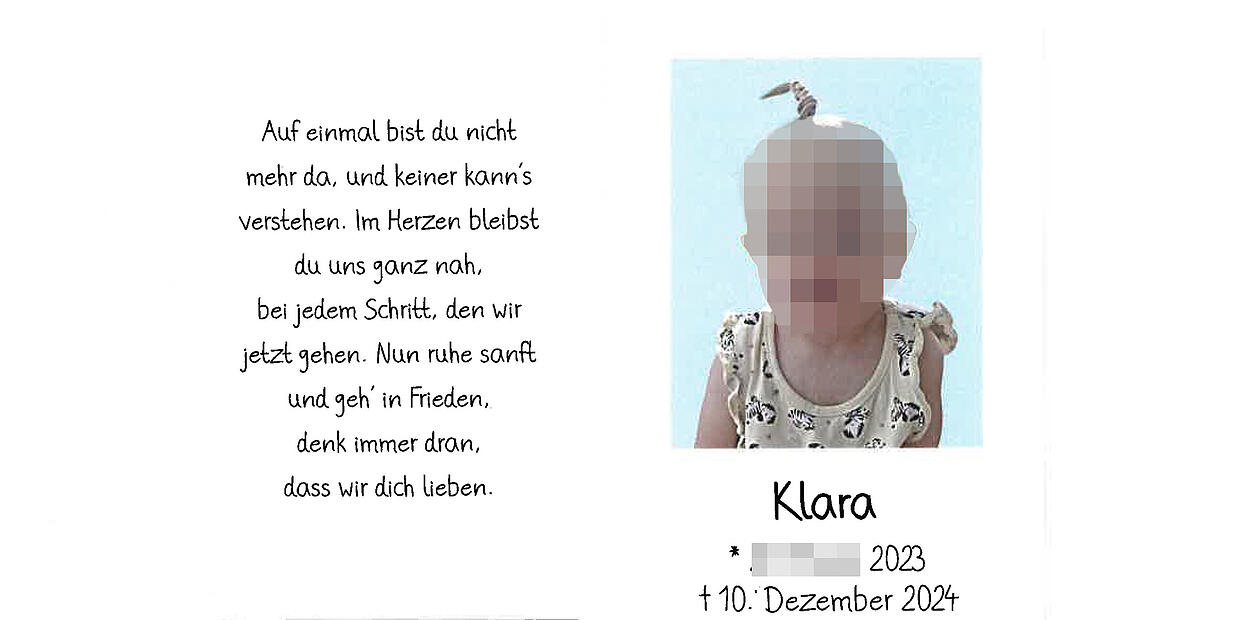 Hätte Klaras Tod vermieden werden können? Die Pflegeeltern stehen im Verdacht, die eindreivierteljährige Klara am 8. Dezember 2024 durch äußere Gewalteinwirkung so sehr verletzt zu haben, dass das Mädchen zwei Tage später im Klinikum Bamberg an den Folgen starb. Die Staatsanwaltschaft ermittelt: