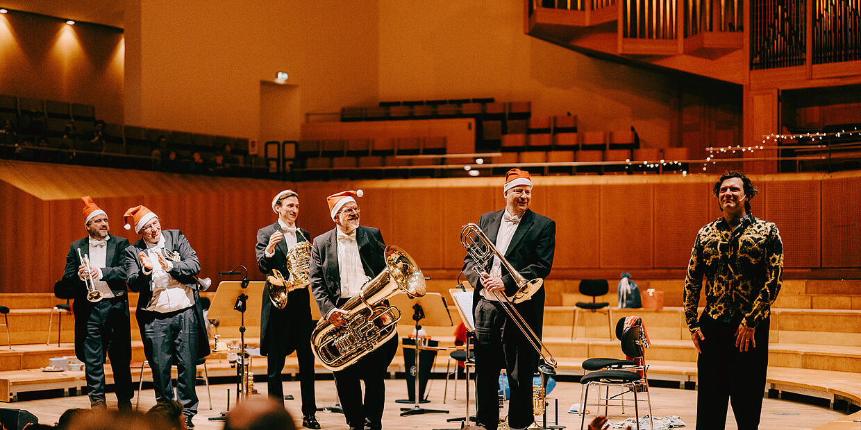 – Das Blechbläserquintett der Symphoniker stimmt sein junges Publikum auf Weihnachten ein. Zwei vom E.T.A.-Hoffmann-Theater sind auch mit dabei. Das ist schmissig, knallig, fröhlich.