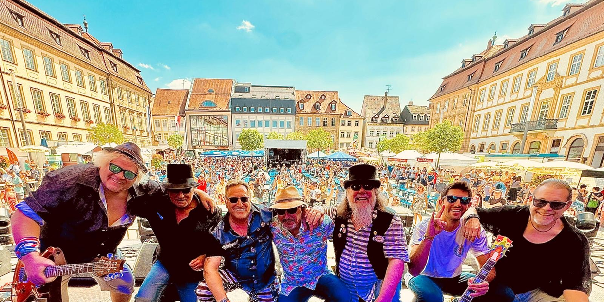Diese Kult-Rockband hat ihre Wurzeln tief in der Region Bamberg. Von AC/DC und ZZ Top bis hin zu Bluesstücken ist alles in ihrem Repertoire vertreten. Die glücklichen Herzensbrecher lassen es einfach gerne auf der Bühne krachen.