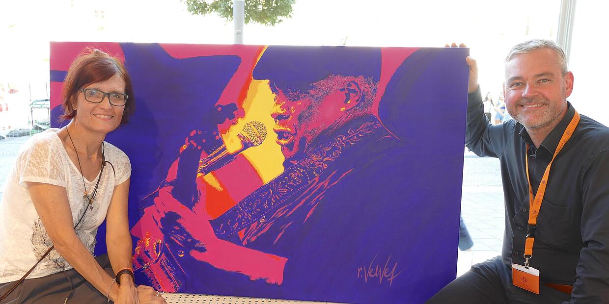 – Die Künstlerin Elke Völkl hat den Botschafter des Bamberger Blues- und Jazzfesitval, Tony Bulluck, porträtiert.