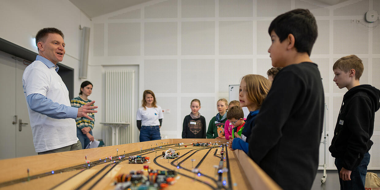 – Die Uni Bamberg hat wieder ihre Türen für wissbegierige Schüler geöffnet. Beim Auftakt widmeten sich die jungen Forscher der Modelleisenbahn und lernten, wie Informatik auf der Schiene wirkt.