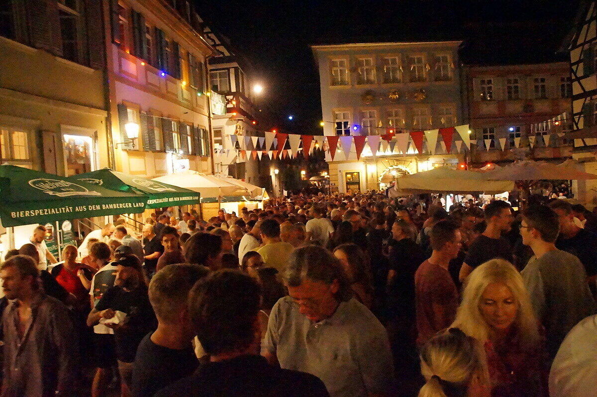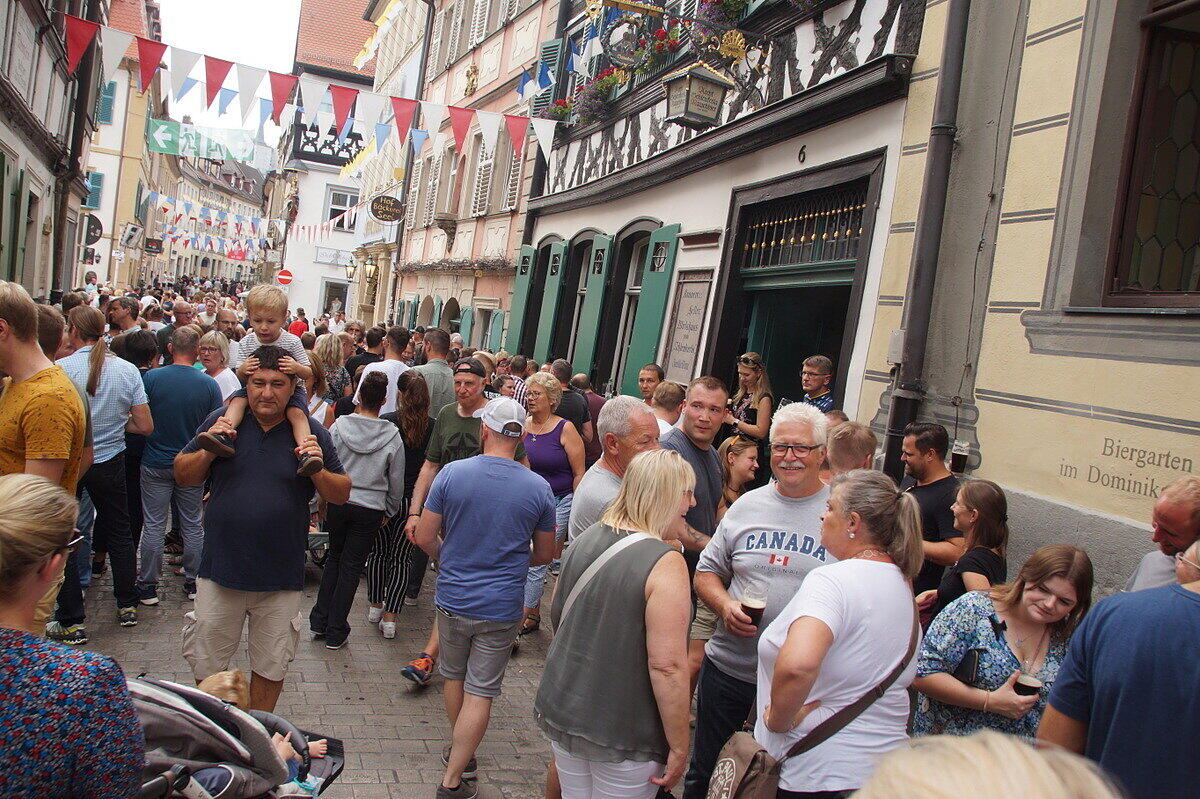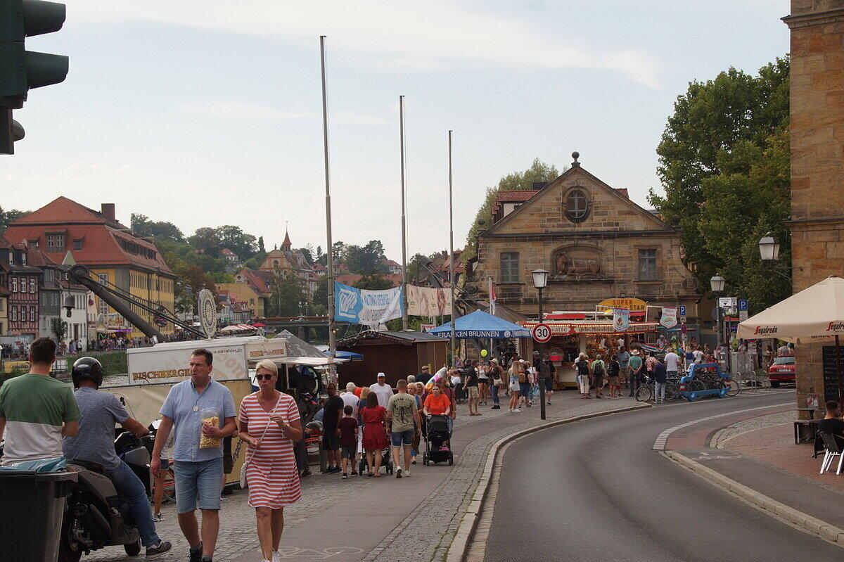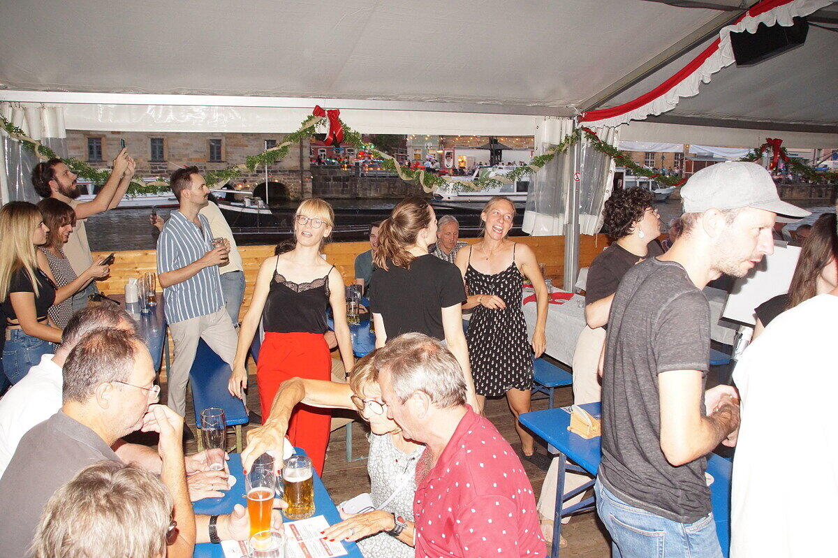Party und Handfessel Sandkerwa: Bamberg weiterhin im Ausnahmezustand Die Sandstraße und alles rundherum ist so voll, dass ein Durchkommen schwierig ist. // Joseph Beck Eindrücke von der Sandkerwa 2022 // Joseph Beck Eindrücke von der Sandkerwa 2022 // Joseph Beck Eindrücke von der Sandkerwa 2022 // Joseph Beck von Andrea Pauly TEILEN  27.08.2022 Bamberg – Mit dem Fischerstechen geht die Sandkerwa am Sonntag weiter. Hier gibt es alle aktuellen Infos und Foto-Galerien im Überblick. Kein Durchkommen in der Sandstraße, auf der Regnitz spiegeln sich bunte Lichter im Wasser und das Bier fließt in sprichwörtlichen Strömen: Ob Gruppen, die einen Junggesellenabschied feiern, eigens heimgekehrte Fortgezogene oder überzeugte Bambergerinnen und Bamberger: Die Stadt ist voller Leben und Leute. Auch Politprominenz hat sich in Bamberg zum Fischertreffen eingefunden: Am Sonntag stand ein Besuch bei der Sandkerwa auch für den bayerischen Ministerpräsidenten Markus Söder auf dem Plan. Bayerns Ministerpräsident war zum Fischerstechen nach Bamberg gekommen. // Sabine Memmel Zwischenbilanz des BRK vom Sonntag Am Sonntag zogen die Helfer vom Bayerischen Roten Kreuz (BRK) gemeinsam mit der BRK-Wasserwacht eine Zwischenbilanz. „An den ersten drei Kerwatagen suchten knapp 70 Personen unsere Sanitäterinnen und Sanitäter auf“, sagt BRK- Einsatzleiter Christoph Treubel. Damit würden sich die Zahlen in etwa auf dem Niveau von 2019 bewegen. Neben kleineren Hilfeleistungen aller Art seien Wundversorgungen der häufigste Anlass für einen Kontakt zum BRK. Gemessen an Besucherzahlen wenige Einsätze wegen Alkohols Erfreulich sei – wie auch schon in den Vorjahren – dass sich gemessen an der Besucherzahl alkoholbedingte Einsatzanlässe auf niedrigem Niveau bewegen. „Sicherlich trinkt der eine oder andere mal zu viel, aber die ganz überwiegende Zahl kennt ihre Grenzen und feiert fröhlich und friedlich“, sagt Treubel. Das BRK ist noch bis einschließlich Dienstagmorgen für die Besucherinnen und Besucher der Sandkerwa da. An den 5 Kerwatagen leisten die Ehrenamtlichen insgesamt knapp 2.000 Einsatzstunden. Messerdieb an der Schranne? Für Aufsehen sorgte bereits am Samstag ein Polizeieinsatz an der Schranne – und damit in unmittelbarer Nähe der Sandkerwa. Eine aufgebrachte Frau teilte der Polizei über den Notruf mit, dass soeben ein Mann mehrere Messer aus der Küche eines Hotels an der Schranne entwendet habe. Er wolle nun das Hotel verlassen. Mit lautem Geschrei im Hintergrund ging diese Mittelung um kurz nach 15 Uhr bei der Polizei ein. Zu diesem Zeitpunkt befanden sich sowohl eine Vielzahl von Gästen im Hotel, als auch Besucher auf der Sandkerwa in direkter Nähe. Deshalb fuhren sofort mehrere Streifenwagen der Polizei zum Einsatz. Erst Handschellen, dann die Lösung des Rätsels Der vermeintliche Dieb hatte inzwischen das Hotel verlassen, befand sich aber noch in der Nähe. Unter den erstaunten Blicken vieler Passanten legten ihm die Beamten die Handfesseln an. Das Ganze stellte sich dann jedoch als großes Missverständnis heraus. Der 45-jährige Nordeuropäer hatte am Vortag seine Dienste als Messerschleifer angeboten. Eine Mitarbeiterin übergab ihm deshalb mehrere Messer des Hotels, welche der Mann nun hatte zurück bringen wollen. Die Hotelmitarbeiterin hatte jedoch den Mitarbeitenden in der Küche nicht Bescheid gegeben. Aufgrund dessen und wegen Verständigungsschwierigkeiten mit dem Mann, gingen diese von einem vermeintlichen Diebstahl aus. Das Missverständnis wurde aufgeklärt und auch die Handfesseln wieder gelöst. Bildergalerien mit Eindrücken von der 72. Sandkerwa Das weitgehend friedliche Feiern ist auch auf den Fotos von der Sandkerwa zu sehen. Unsere Fotografen waren mit der Kamera unterwegs und haben die Feiernden, die Bands und Kapellen und die entspannten Besucher im Bild festgehalten. Hier können Sie sich durch unsere Bilderstrecken klicken: Eindrücke von der Sandkerwa 2022 // FOTOGALERIE Joseph Beck Eindrücke von der Sandkerwa 2022 // FOTOGALERIE Joseph Beck Eindrücke von der Sandkerwa 2022 // FOTOGALERIE Joseph Beck Eindrücke von der Sandkerwa 2022 // FOTOGALERIE Joseph Beck Eindrücke von der Sandkerwa 2022 // FOTOGALERIE Joseph Beck Eindrücke von der Sandkerwa 2022 // FOTOGALERIE Joseph Beck Eindrücke von der Sandkerwa 2022 // FOTOGALERIE Joseph Beck Eindrücke von der Sandkerwa 2022 // FOTOGALERIE Joseph Beck Eindrücke von der Sandkerwa 2022 // FOTOGALERIE Joseph Beck Eindrücke von der Sandkerwa 2022 // FOTOGALERIE Joseph Beck Eindrücke von der Sandkerwa 2022 // FOTOGALERIE Joseph Beck Eindrücke von der Sandkerwa 2022 // FOTOGALERIE Joseph Beck Eindrücke von der Sandkerwa 2022 // FOTOGALERIE Joseph Beck Eindrücke von der Sandkerwa 2022 // FOTOGALERIE Eindrücke von der Sandkerwa 2022 Eindrücke von der Sandkerwa 2022 // FOTOGALERIE Joseph Beck Eindrücke von der Sandkerwa 2022 // FOTOGALERIE Joseph Beck Eindrücke von der Sandkerwa 2022 // FOTOGALERIE Joseph Beck Eindrücke von der Sandkerwa 2022 // FOTOGALERIE Joseph Beck Eindrücke von der Sandkerwa 2022 // FOTOGALERIE Eindrücke von der Sandkerwa 2022 Eindrücke von der Sandkerwa 2022 // FOTOGALERIE Joseph Beck Eindrücke von der Sandkerwa 2022 // FOTOGALERIE Joseph Beck Eindrücke von der Sandkerwa 2022 // FOTOGALERIE Joseph Beck Eindrücke von der Sandkerwa 2022 // FOTOGALERIE Joseph Beck Eindrücke von der Sandkerwa 2022 // FOTOGALERIE Joseph Beck Eindrücke von der Sandkerwa 2022 // FOTOGALERIE Joseph Beck Eindrücke von der Sandkerwa 2022 // FOTOGALERIE Joseph Beck Eindrücke von der Sandkerwa 2022 // FOTOGALERIE Joseph Beck Eindrücke von der Sandkerwa 2022 // FOTOGALERIE Joseph Beck Eindrücke von der Sandkerwa 2022 // FOTOGALERIE Joseph Beck Eindrücke von der Sandkerwa 2022 // FOTOGALERIE Joseph Beck Eindrücke von der Sandkerwa 2022 // FOTOGALERIE Joseph Beck Eindrücke von der Sandkerwa 2022 // FOTOGALERIE Joseph Beck Eindrücke von der Sandkerwa 2022 // FOTOGALERIE Joseph Beck 