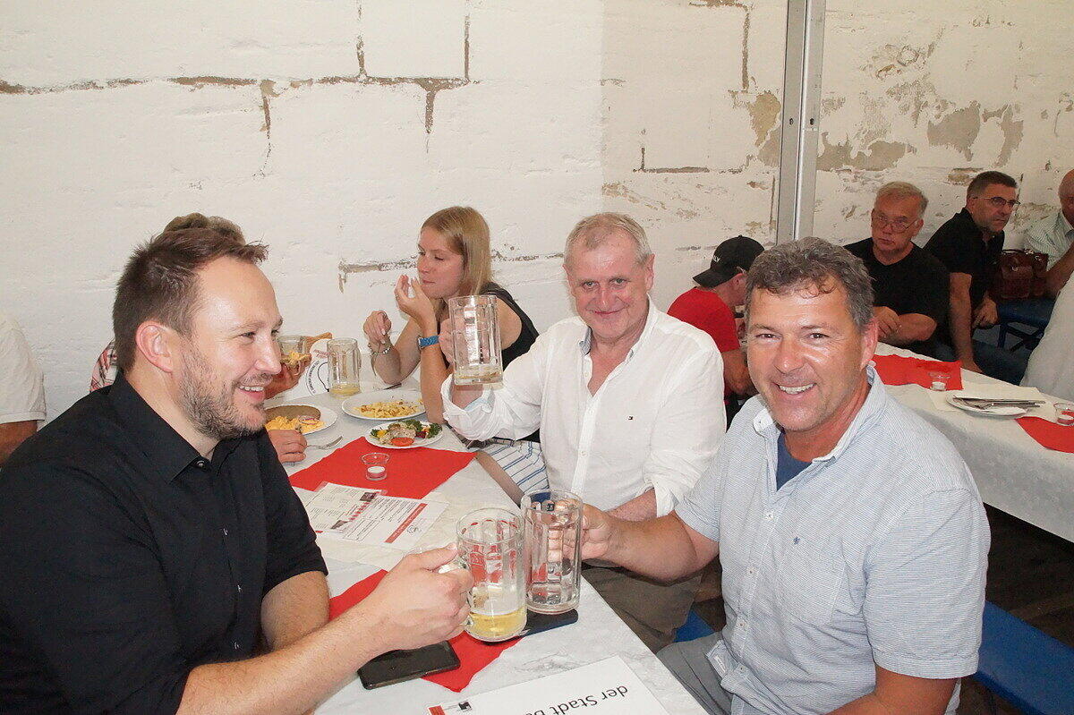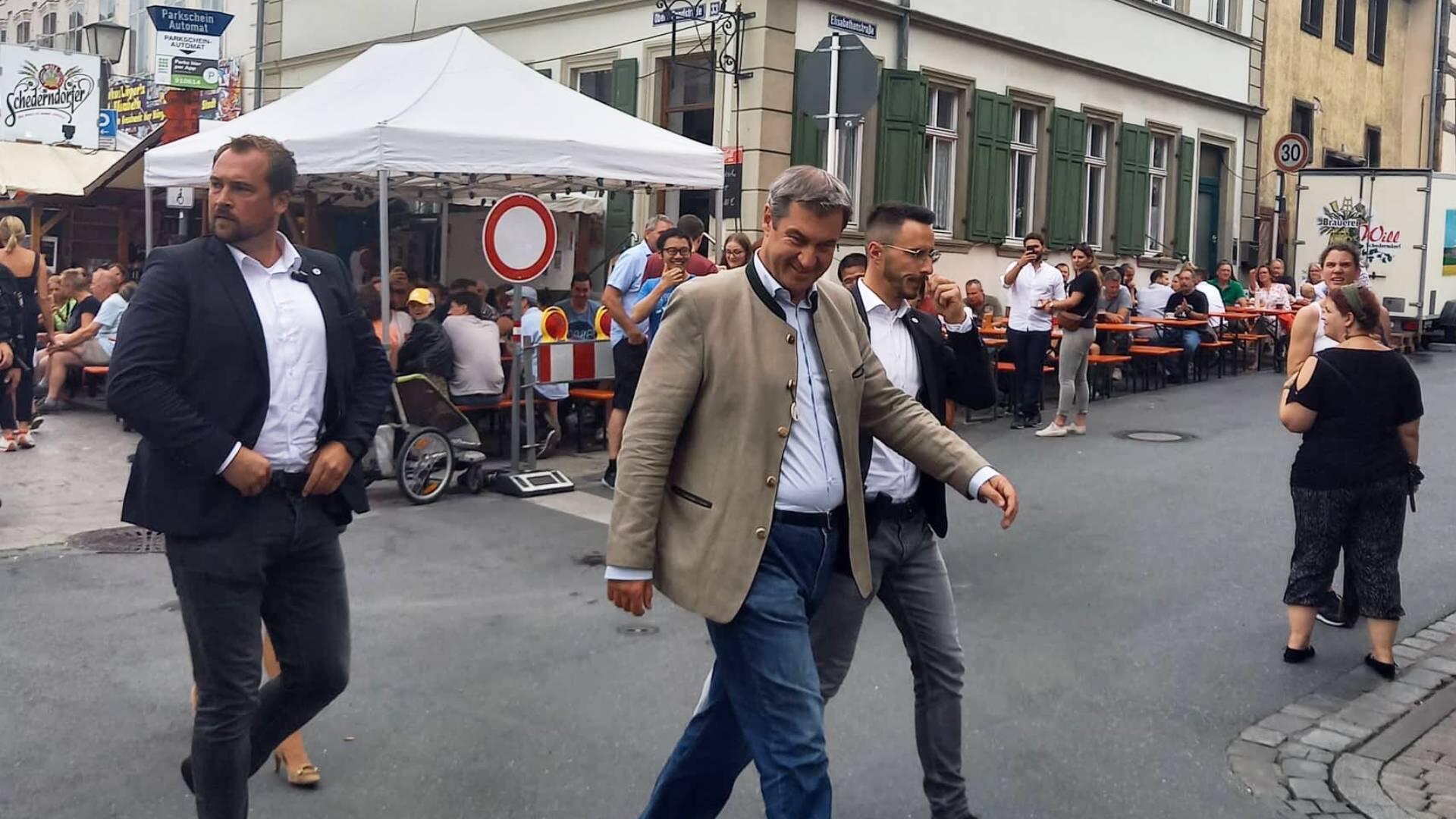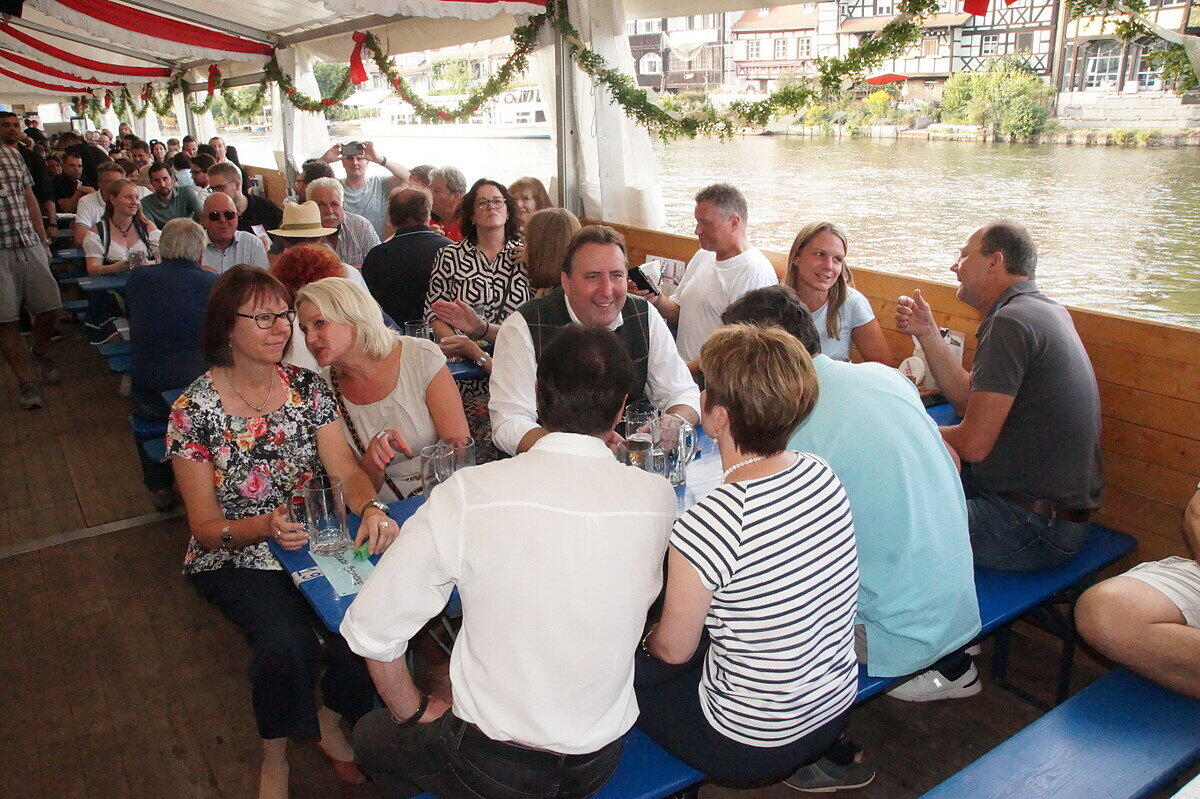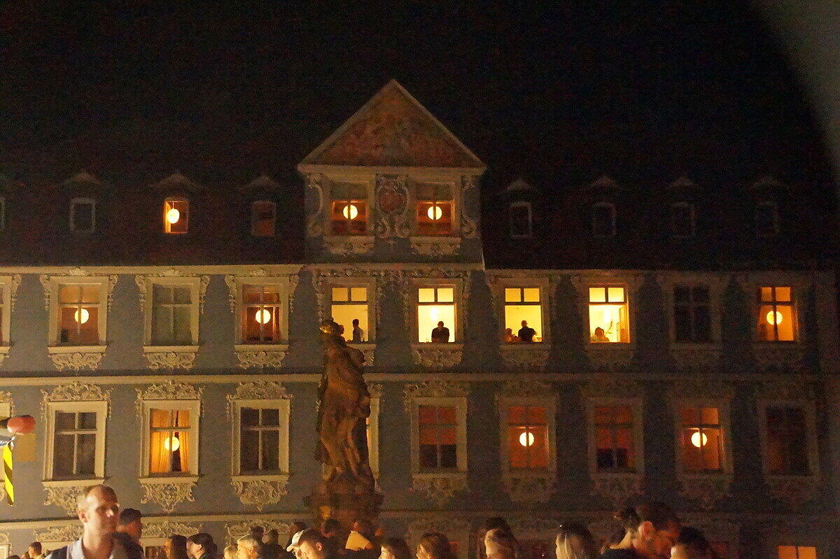 Party und Handfessel Sandkerwa: Bamberg weiterhin im Ausnahmezustand Die Sandstraße und alles rundherum ist so voll, dass ein Durchkommen schwierig ist. // Joseph Beck Eindrücke von der Sandkerwa 2022 // Joseph Beck Eindrücke von der Sandkerwa 2022 // Joseph Beck Eindrücke von der Sandkerwa 2022 // Joseph Beck von Andrea Pauly TEILEN  27.08.2022 Bamberg – Mit dem Fischerstechen geht die Sandkerwa am Sonntag weiter. Hier gibt es alle aktuellen Infos und Foto-Galerien im Überblick. Kein Durchkommen in der Sandstraße, auf der Regnitz spiegeln sich bunte Lichter im Wasser und das Bier fließt in sprichwörtlichen Strömen: Ob Gruppen, die einen Junggesellenabschied feiern, eigens heimgekehrte Fortgezogene oder überzeugte Bambergerinnen und Bamberger: Die Stadt ist voller Leben und Leute. Auch Politprominenz hat sich in Bamberg zum Fischertreffen eingefunden: Am Sonntag stand ein Besuch bei der Sandkerwa auch für den bayerischen Ministerpräsidenten Markus Söder auf dem Plan. Bayerns Ministerpräsident war zum Fischerstechen nach Bamberg gekommen. // Sabine Memmel Zwischenbilanz des BRK vom Sonntag Am Sonntag zogen die Helfer vom Bayerischen Roten Kreuz (BRK) gemeinsam mit der BRK-Wasserwacht eine Zwischenbilanz. „An den ersten drei Kerwatagen suchten knapp 70 Personen unsere Sanitäterinnen und Sanitäter auf“, sagt BRK- Einsatzleiter Christoph Treubel. Damit würden sich die Zahlen in etwa auf dem Niveau von 2019 bewegen. Neben kleineren Hilfeleistungen aller Art seien Wundversorgungen der häufigste Anlass für einen Kontakt zum BRK. Gemessen an Besucherzahlen wenige Einsätze wegen Alkohols Erfreulich sei – wie auch schon in den Vorjahren – dass sich gemessen an der Besucherzahl alkoholbedingte Einsatzanlässe auf niedrigem Niveau bewegen. „Sicherlich trinkt der eine oder andere mal zu viel, aber die ganz überwiegende Zahl kennt ihre Grenzen und feiert fröhlich und friedlich“, sagt Treubel. Das BRK ist noch bis einschließlich Dienstagmorgen für die Besucherinnen und Besucher der Sandkerwa da. An den 5 Kerwatagen leisten die Ehrenamtlichen insgesamt knapp 2.000 Einsatzstunden. Messerdieb an der Schranne? Für Aufsehen sorgte bereits am Samstag ein Polizeieinsatz an der Schranne – und damit in unmittelbarer Nähe der Sandkerwa. Eine aufgebrachte Frau teilte der Polizei über den Notruf mit, dass soeben ein Mann mehrere Messer aus der Küche eines Hotels an der Schranne entwendet habe. Er wolle nun das Hotel verlassen. Mit lautem Geschrei im Hintergrund ging diese Mittelung um kurz nach 15 Uhr bei der Polizei ein. Zu diesem Zeitpunkt befanden sich sowohl eine Vielzahl von Gästen im Hotel, als auch Besucher auf der Sandkerwa in direkter Nähe. Deshalb fuhren sofort mehrere Streifenwagen der Polizei zum Einsatz. Erst Handschellen, dann die Lösung des Rätsels Der vermeintliche Dieb hatte inzwischen das Hotel verlassen, befand sich aber noch in der Nähe. Unter den erstaunten Blicken vieler Passanten legten ihm die Beamten die Handfesseln an. Das Ganze stellte sich dann jedoch als großes Missverständnis heraus. Der 45-jährige Nordeuropäer hatte am Vortag seine Dienste als Messerschleifer angeboten. Eine Mitarbeiterin übergab ihm deshalb mehrere Messer des Hotels, welche der Mann nun hatte zurück bringen wollen. Die Hotelmitarbeiterin hatte jedoch den Mitarbeitenden in der Küche nicht Bescheid gegeben. Aufgrund dessen und wegen Verständigungsschwierigkeiten mit dem Mann, gingen diese von einem vermeintlichen Diebstahl aus. Das Missverständnis wurde aufgeklärt und auch die Handfesseln wieder gelöst. Bildergalerien mit Eindrücken von der 72. Sandkerwa Das weitgehend friedliche Feiern ist auch auf den Fotos von der Sandkerwa zu sehen. Unsere Fotografen waren mit der Kamera unterwegs und haben die Feiernden, die Bands und Kapellen und die entspannten Besucher im Bild festgehalten. Hier können Sie sich durch unsere Bilderstrecken klicken: Eindrücke von der Sandkerwa 2022 // FOTOGALERIE Joseph Beck Eindrücke von der Sandkerwa 2022 // FOTOGALERIE Joseph Beck Eindrücke von der Sandkerwa 2022 // FOTOGALERIE Joseph Beck Eindrücke von der Sandkerwa 2022 // FOTOGALERIE Joseph Beck Eindrücke von der Sandkerwa 2022 // FOTOGALERIE Joseph Beck Eindrücke von der Sandkerwa 2022 // FOTOGALERIE Joseph Beck Eindrücke von der Sandkerwa 2022 // FOTOGALERIE Joseph Beck Eindrücke von der Sandkerwa 2022 // FOTOGALERIE Joseph Beck Eindrücke von der Sandkerwa 2022 // FOTOGALERIE Joseph Beck Eindrücke von der Sandkerwa 2022 // FOTOGALERIE Joseph Beck Eindrücke von der Sandkerwa 2022 // FOTOGALERIE Joseph Beck Eindrücke von der Sandkerwa 2022 // FOTOGALERIE Joseph Beck Eindrücke von der Sandkerwa 2022 // FOTOGALERIE Joseph Beck Eindrücke von der Sandkerwa 2022 // FOTOGALERIE Eindrücke von der Sandkerwa 2022 Eindrücke von der Sandkerwa 2022 // FOTOGALERIE Joseph Beck Eindrücke von der Sandkerwa 2022 // FOTOGALERIE Joseph Beck Eindrücke von der Sandkerwa 2022 // FOTOGALERIE Joseph Beck Eindrücke von der Sandkerwa 2022 // FOTOGALERIE Joseph Beck Eindrücke von der Sandkerwa 2022 // FOTOGALERIE Eindrücke von der Sandkerwa 2022 Eindrücke von der Sandkerwa 2022 // FOTOGALERIE Joseph Beck Eindrücke von der Sandkerwa 2022 // FOTOGALERIE Joseph Beck Eindrücke von der Sandkerwa 2022 // FOTOGALERIE Joseph Beck Eindrücke von der Sandkerwa 2022 // FOTOGALERIE Joseph Beck Eindrücke von der Sandkerwa 2022 // FOTOGALERIE Joseph Beck Eindrücke von der Sandkerwa 2022 // FOTOGALERIE Joseph Beck Eindrücke von der Sandkerwa 2022 // FOTOGALERIE Joseph Beck Eindrücke von der Sandkerwa 2022 // FOTOGALERIE Joseph Beck Eindrücke von der Sandkerwa 2022 // FOTOGALERIE Joseph Beck Eindrücke von der Sandkerwa 2022 // FOTOGALERIE Joseph Beck Eindrücke von der Sandkerwa 2022 // FOTOGALERIE Joseph Beck Eindrücke von der Sandkerwa 2022 // FOTOGALERIE Joseph Beck Eindrücke von der Sandkerwa 2022 // FOTOGALERIE Joseph Beck Eindrücke von der Sandkerwa 2022 // FOTOGALERIE Joseph Beck 