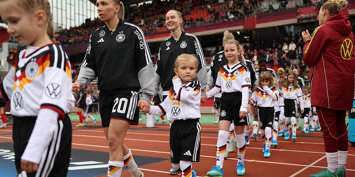 Ein brandneues adidas-Outfit mit Trikot, Hose, Stutzen und Fußballschuhen, Erinnerungsfotos mit DFB-Maskottchen Paule, eine Stadionrunde durch das Nürnberger Achteck und schließlich der große Moment: Gemeinsam mit Guilia Gwinn, Jule Brand und den weiteren Stars der deutschen und österreichischen Nationalmannschaften einlaufen – vor über 24.000 Zuschauerinnen und Zuschauern sowie den mitgereisten Eltern, Geschwistern und Teamkolleginnen auf der Tribüne.
