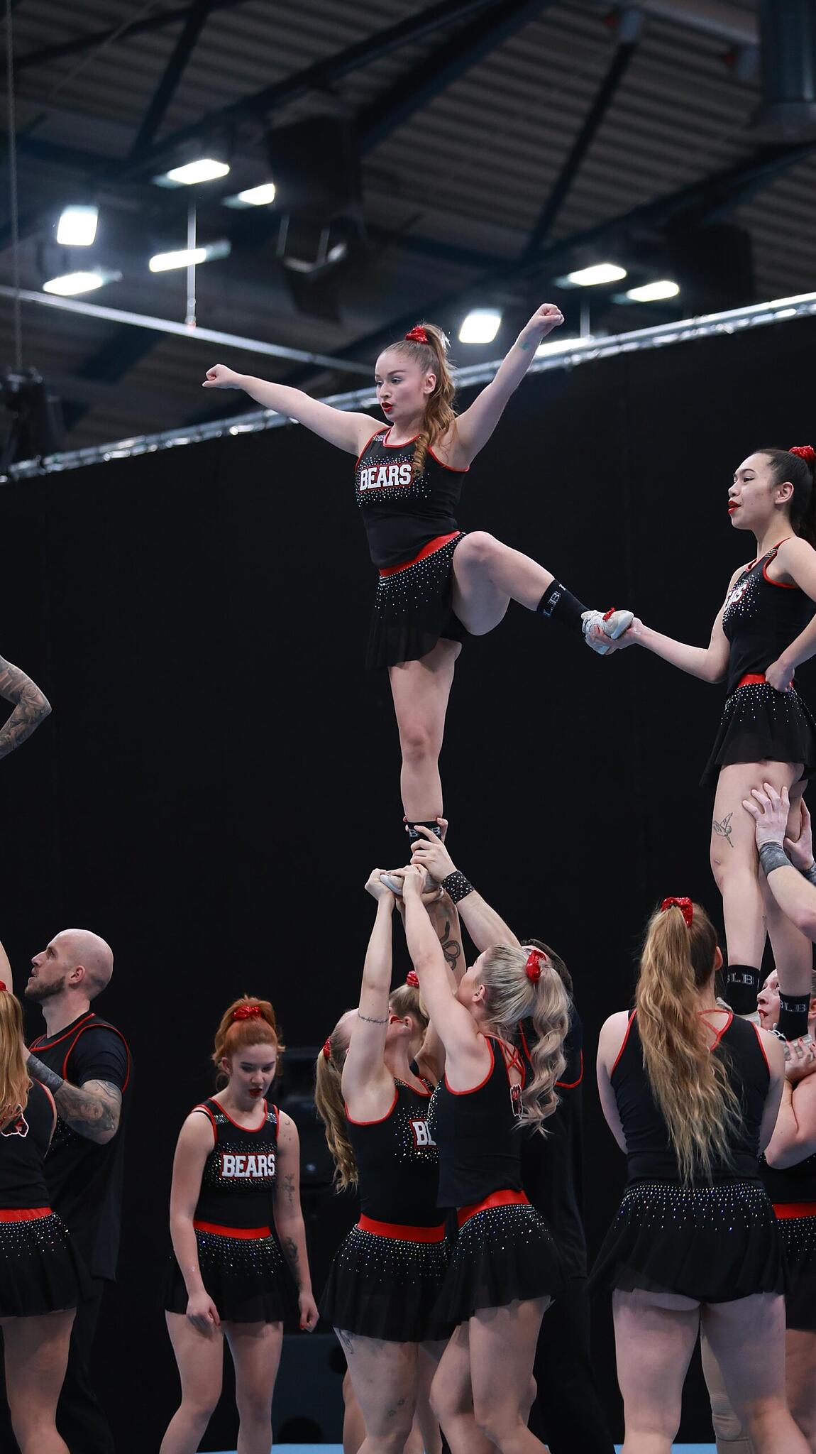 Cheerleading Lucky Bears: Bayerischer Meistertitel für Bamberger Team Die Bamberg Lucky Bears waren bei den Landesmeisterschaften in Ingolstadt am Start. // Felix Rothla von Redaktion TEILEN  12.12.2024 Bamberg – Bei der Bayerischen Cheerleading-Meisterschaft in Ingolstadt sind die Lucky Bears aus Bamberg mit mehr als 80 Athletinnen und Athleten dabei. Alle vier Teams haben sich für die nächste Wettkampfrunde qualifiziert. Mehr als 80 Athletinnen und Athleten des Bamberger Cheerleading-Vereins Bamberg Lucky Bears 2002 waren bei der Landesmeisterschaft des Cheerleading und Cheersport-Verbandes Deutschland e.V. (CCVD) in Ingolstadt am Start. Mit großem Erfolg: Neben einem Meistertitel in der Kategorie „Senior Coed Level 3“ qualifizierten sich alle vier Teams des Vereins für die nächste Wettkampfrunde. Cheerleader aus ganz Bayern traten in verschiedenen Altersklassen und Leistungslevels an. In einer zweieinhalbminütigen Routine mit spektakulären Hebefiguren (Stunts), dynamischen Sprüngen (Jumps) und akrobatischem Bodenturnen (Tumbling) zeigten sie vor einer 14-köpfigen Jury die Ergebnisse ihres monatelangen Trainings. Die Leistungen aller vier Bamberger Teams wurden mit der Qualifikation für die Regionalmeisterschaft Süd belohnt. // Felix Rothla Regionalmeisterschaft Süd im Februar in Neu-Ulm Die Lucky Bears aus Bamberg hatten Grund zu feiern: Das Seniorteam holte sich in seiner Kategorie den ersten Platz und damit einen Meistertitel. Auch das Juniorteam glänzte mit einem verdienten dritten Platz. Die Leistungen aller vier Teams wurden mit der Qualifikation für die Regionalmeisterschaft Süd belohnt. Diese findet am 22. Februar 2025 in Neu-Ulm statt und bringt die besten Teams aus Bayern, Baden-Württemberg und Hessen zusammen. Lesen Sie auch: Cheerleader-Gruppe aus Bamberg Mitgliederzahl verdoppelt: Lucky Bears sind auf dem Sprung Der Cheerleading-Verein Bamberg Lucky Bears 2002 vereint 100 Aktive im Alter von 4 bis 33 Jahren. Mit einer achtstündigen Generalprobe stimmte sich die Gruppe auf den Saisonhöhepunkt ein. Auch drei Männer spielen eine entscheidende Rolle.