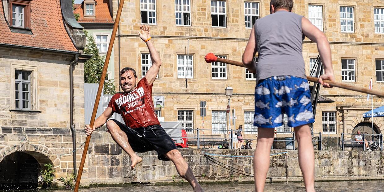 Rup in Gefahr Fischerstechen: Selbstversuch zur Sandkerwa Dominic Buckreus von Daniel Ruppert TEILEN  26.08.2022 Bamberg – Auch mit einer stumpfen Waffe lässt sich ein Gegner nass machen. Beim Training für das Fischerstechen in Bamberg sieht der Sportredakteur kein Land. Artikel anhören Sie können uns nicht hören? Diese Funktion können Sie exklusiv mit PLUS nutzen. Erhalten Sie uneingeschränkten Zugriff auf alle Audioinhalte, Artikel und vieles mehr. Vorlesefunktion freischalten Bereits -Zugriff? Jetzt Anmelden Na, erwischt! Du bist wohl ein bisschen zu neugierig, was?