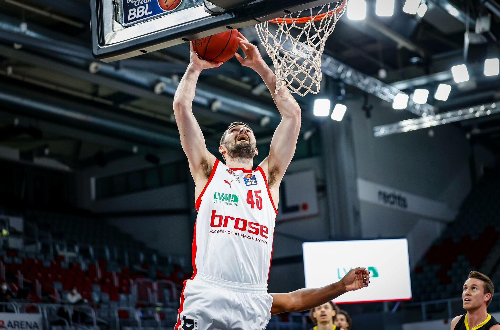 Brose Bamberg Roijakkers bestätigt: Alle Importspieler gehen Johan Roijakkers steht mit Brose Bamberg vor einem Kaderumbau. // Daniel Löb von Maximilian Glas TEILEN  24.06.2021 Bamberg – Der Brose-Trainer steht mit seinem Team vor einem personellem Umbruch. Neben den sieben ausländischen Akteuren verlässt auch Bennet Hundt den Klub. Für den neunfachen deutschen Meister Brose Bamberg steht wie in den vergangenen Jahren wieder ein großer personeller Umbruch an. Wie Cheftrainer Johan Roijakkers auf der Brose-Homepage verlautbaren ließ, wird aller Voraussicht nach keiner der sieben letztjährigen Importspieler nach Bamberg zurückkehren. „Ich denke nicht, dass einer unserer ausländischen Spieler zurückkommen wird. Wir bedanken uns bei allen für die gezeigte Leistung und wünschen ihnen für die Zukunft alles Gute“, sagt der 40-jährige Niederländer und fügt an: „Aufgrund der ungewissen Corona-Situation haben wir nur Einjahresverträge abgeschlossen. Das war richtig, da wir auch aktuell noch immer Unsicherheiten haben, wir etwa noch nicht wissen, ob und wenn ja, wie viele Zuschauer in die Halle dürfen. Vor diesem Hintergrund muss man die Kaderplanung für die nächste Saison bewerten und den bestmöglichen Kader zusammenstellen.“ Lesen Sie auch: Meinung Brose-Umbruch: Lotterie ohne Nachhaltigkeit Mit dem neuerlichen Kaderumbau tut sich der einstige deutsche Basketball-Serienmeister keinen Gefallen, meint unser Redakteur Maximilian Glas. Auch den Abgang von Fanliebling Bennet Hundt bestätigt Roijakkers. „Bennet haben wir ein Angebot unterbreitet, das er leider abgelehnt hat. Er wird innerhalb der BBL zu einem anderen Klub wechseln.“ Am Donnerstagmittag gaben dann die EWE Baskets Oldenburg die Verpflichtung Hundts bekannt. „Ich freue mich, nächste Saison für Oldenburg spielen zu dürfen und bin hochmotiviert für diese neue Herausforderung. Ich hoffe auf eine erfolgreiche Saison als Team und kann es kaum erwarten, in einer hoffentlich vollen EWE Arena spielen zu können“, so Hundt, der für zwei Jahre bei den Norddeutschen unterschrieben hat. Ob sich bei den Bambergern zu den bisherigen deutschen Akteuren Christian Sengfelder, Kenny Ogbe, Dominic Lockhart, Elias Baggette, Joel Aminu und Marvin Omuvwie noch weitere nationale Spieler dazugesellen, lässt der Bamberger Trainer offen. „Alles in allem könnten wir mit diesem deutschen Stamm in die Saison gehen. Aber natürlich schauen wir uns weiter um, denken über ein, zwei zusätzliche deutsche Spieler nach. Sollten wir jemanden passendes finden – schön. Wenn nicht, dann finde ich unsere deutsche Rotation sehr wettbewerbsfähig.“ David Kravish wird Brose mit seiner Präsenz unter den Körben fehlen. Wohin es den Center verschlägt, ist noch nicht bekannt. // Daniel Löb Bei den Verpflichtungen der neuen Importspieler könnte laut dem Niederländer Geduld gefragt sein. Die NBA-Summerleague geht in diesem Jahr bis zum 17. August. Zu dieser Zeit wird Brose Bamberg in die Saisonvorbereitung starten. „Wir versuchen natürlich unseren Kader bis Anfang August vollständig zu haben, aber es kann sein, dass sich einige Spieler, die wir unter Vertrag genommen haben, noch bei der Summerleague präsentieren wollen. Viele der Jungs haben den Traum von der NBA. Diesen Traum wollen wir ihnen nicht nehmen“, so Roijakkers. Lesen Sie auch: Bamberg Baskets Zehn Volltreffer: Die besten Bamberger Verpflichtungen Welche Spieler waren die besten Transfers der Bamberger Basketballer in diesem Jahrtausend? Das FT-Ranking seit 2000. Brose Bamberg Kader 2021/22: Es bleiben: Christian Sengfelder (Vertrag bis 2023), Kenny Ogbe (2022), Dominic Lockhart (2022), Elias Baggette (2024) Neuzugänge: Joel Aminu (Phoenix Hagen, 2022), Marvin Omuvwie (BG Göttingen, 2023) Abgänge: Devon Hall (Armani Mailand), Mateo Seric (Tigers Tübingen), Bennet Hundt, (EWE Baskets Oldenburg), Michele Vitali (Reyer Venezia), David Kravish, Chase Fieler, Shevon Thompson, Alex Ruoff, Tyler Larson (alle Ziel unbekannt) Noch offen: Moritz Plescher, Joanic Grüttner Bacoul