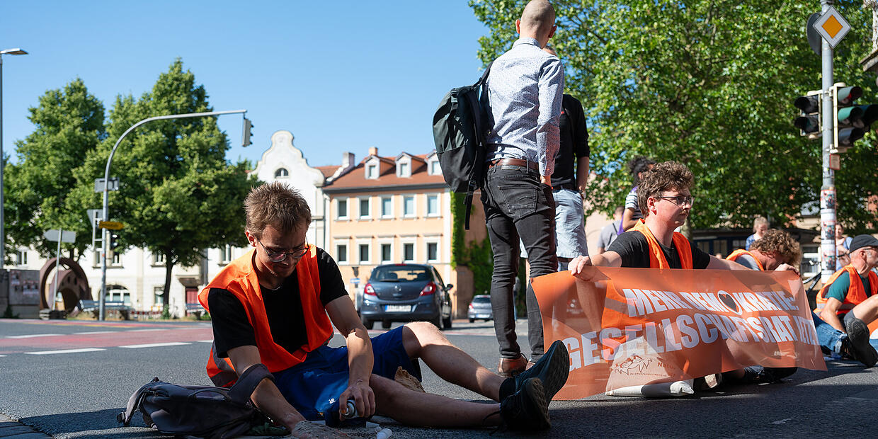 Aktion Letzte Generation: Klimakleber blockieren Verkehr in Bamberg