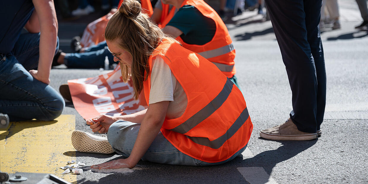 Das war gar nicht so einfach. Die Feuerwehr musste anrücken, das richtige Lösungsmittel gefunden werden. Um 20:30 Uhr wurde der letzte Klimakleber von der Straße entfernt.