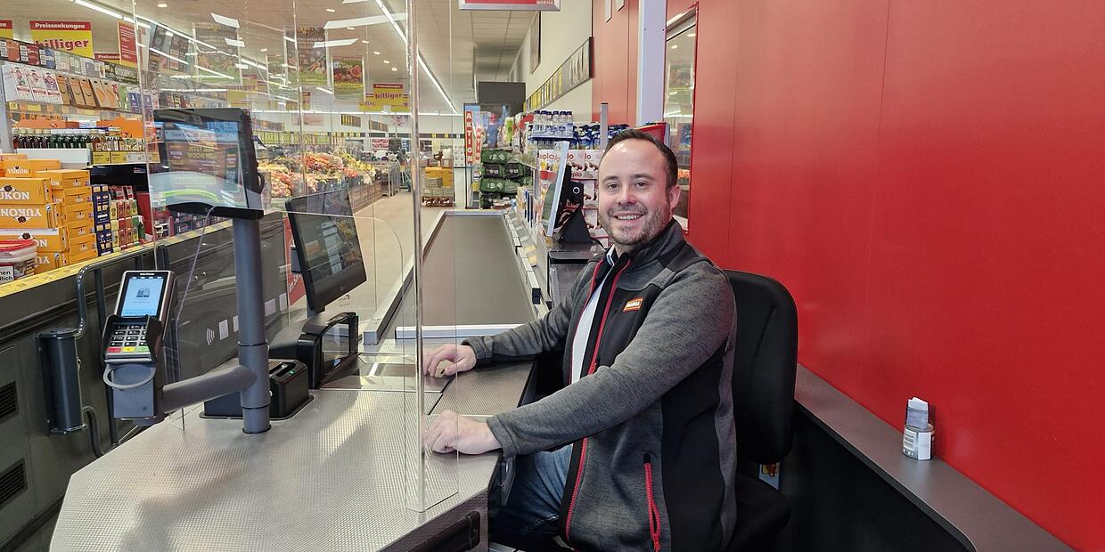 Alle Einkäufe, die Erster Bürgermeister Daniel Vinzens als Kassenaushilfe in einer Stunde über den Scanner zieht, werden als Geldspende einem guten Zweck zugutekommen.