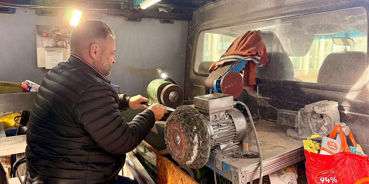 Vergessenes Handwerk Berühmter Klingenschleifer kommt für eine Woche nach Bamberg Foto: David Hetzner von David Hetzner TEILEN  vor 1 Stunde Bamberg – Werkstatt auf vier Rädern: Ein Messerexperte mit jahrzehntelanger Erfahrung bringt sein Können nach Bamberg. Eine Woche lang wird er dort vor Ort Messer und andere Werkzeuge schärfen. Wo er zu finden ist und warum sein Handwerk vom Aussterben bedroht ist. Artikel anhören Sie können uns nicht hören? Diese Funktion können Sie exklusiv mit PLUS nutzen. Erhalten Sie uneingeschränkten Zugriff auf alle Audioinhalte, Artikel und vieles mehr. Vorlesefunktion freischalten Bereits -Zugriff? Jetzt Anmelden Na, erwischt! Du bist wohl ein bisschen zu neugierig, was?
