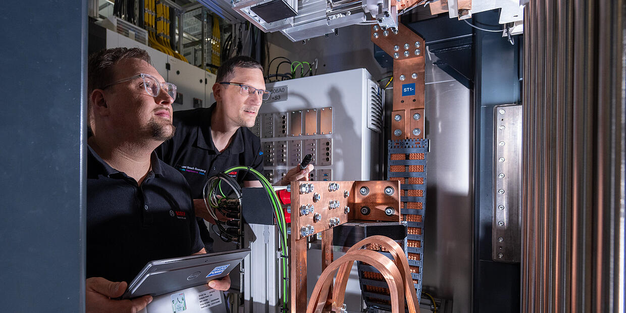 – Bosch Bamberg brennt für Wasserstoff: Neuerdings stellt die Firma ihn selbst her. Im hauseigenen Elektrolyseur. Ein kleiner Schritt für die Autoindustrie, ein großer Schritt für Bosch Bamberg.