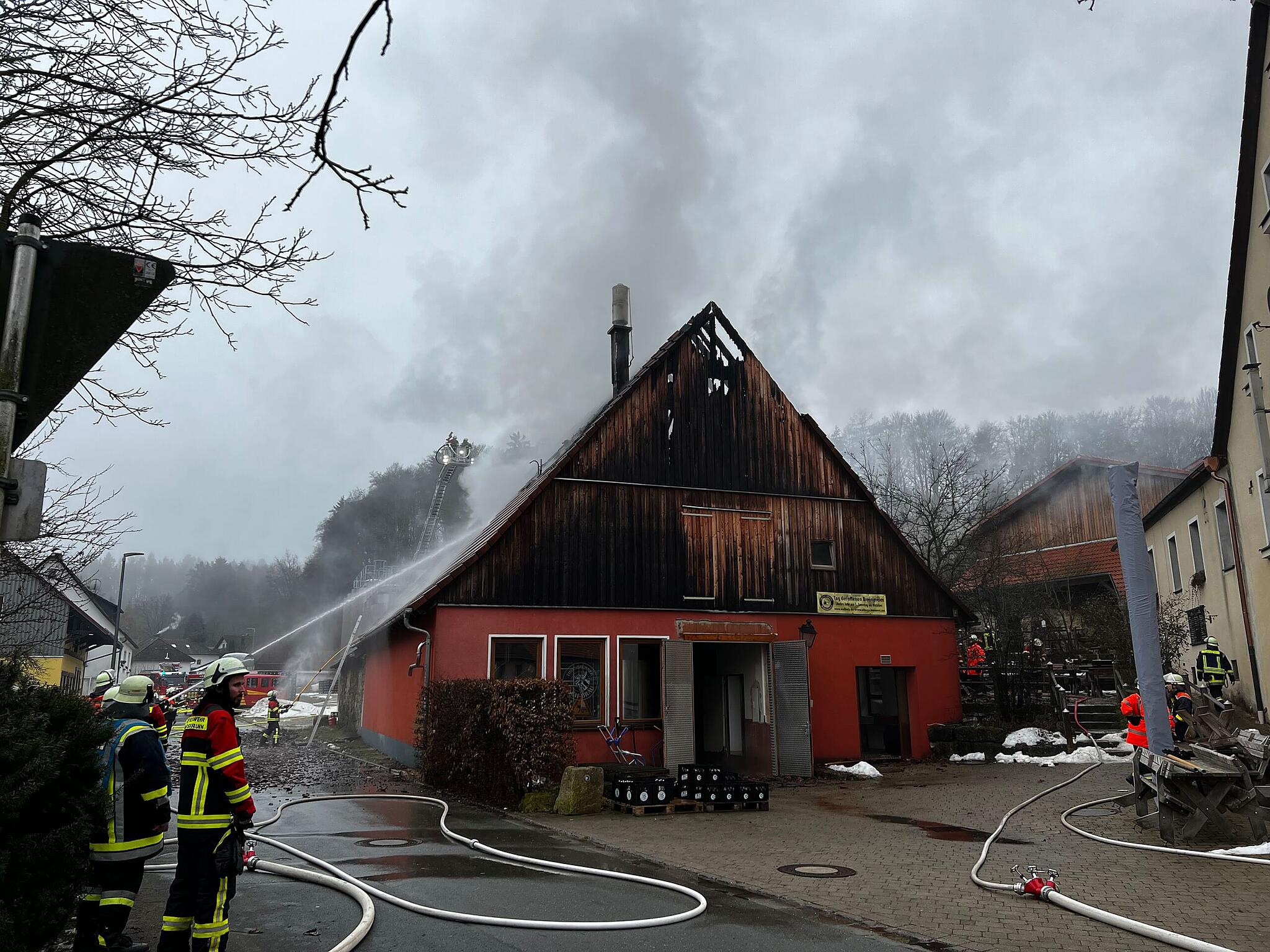Feuer in Thuisbrunn Explosionsgefahr: Dachstuhl der Elch-Bräu brennt Am Dienstag kam es in Thuisbrunn im Landkreis Forchheim zu einem Dachstuhlbrand. // NEWS5 / Merzbach (NEWS5) von Andreas Kraft TEILEN  14.02.2023 Thuisbrunn – Der Dachstuhl der Brauerei in Thuisbrunn ist komplett ausgebrannt. Das alte Gasthaus blieb unbeschädigt, doch zwischenzeitlich drohte eine Explosion. Es war ein Schock für Braumeister Georg Kugler. Am Dienstag-Vormittag brach im Dachstuhl seiner Brauerei ein Feuer aus. Um 11.35 Uhr ging der Alarm bei der Feuerwehr ein, als die Einsatzkräfte vor Ort ankamen, stand der Dachstuhl der Elch-Bräu bereits komplett in Flammen. Die 90 Einsatzkräfte vor Ort brachten nach Angaben der Feuerwehr den Brand schnell unter Kontrolle. Nach weniger als einer Stunde war das Feuer gelöscht. Verletzt wurde keiner. Der Dachstuhl brannte komplett aus. Verletzt wurde keiner. // NEWS5 / Merzbach (NEWS5) Gebrannt hat ein Nebengebäude des alten Gasthauses aus dem 17. Jahrhundert. In dem Gebäude wird normalerweise Bier gebraut und Schnaps gebrannt. Alkohol in Brauerei und Brennerei sorgt für Explosionsgefahr Die Einsatzkräfte konnten eine verhindern, dass die Flammen den Alkohol entzündeten. Das hätte eine Explosion ausgelöst. Nach dem Brand prüfte die Feuerwehr am Nachmittag noch, ob die Statik des Gebäudes nach dem Unglück noch intakt ist. Nach dem Dachstuhlbrand wirkte es auf die Feuerwehrkräfte vor Ort, als könnten Teile des Gebäudes einstürzen. Die Brandursache konnte noch nicht abschließend ermittel werden. Die Kriminalpolizei war am Nachmittag zur Spurensicherung vor Ort und nahm die Ermittlungen auf. Die Polizei schätzte den entstandenen Schaden auf einen mittleren sechsstelligen Betrag - also etwa eine halbe Million Euro. Betroffen war das Nebengebäude, in dem das Bier gebraut wird. Das historische Gasthaus blieb unbeschädigt. // NEWS5 / Merzbach (NEWS5) Braumeister unter Schock Braumeister Georg Kugler reagierte auf den Brand merklich geschockt. 2002 hat er zusammen mit Bianca Kugler das alte Gasthaus übernommen, dessen Geschichte bis Ende des 16. Jahrhunderts zurückreicht. Die Renovierung führten sie teilweise in Eigenleistung durch. 2007 belebte Kugler, Braumeister, Mälzermeister und Biersomelier, die gut 400-jährige Braugeschichte in Thuisbrunn wieder, nachdem dort fast 100 Jahre lang nicht mehr gemaischt worden war. Für seine Spezialitäten hat er bereits zahlreiche Auszeichnungen erhalten. Neben Bier produziert er auch Whisky. Erst im vergangenen Jahr hat er viel Geld investiert – in eine neue Kühlanlage, die Energie nachhaltiger nutzt und mit einer Photovoltaikanlage kombiniert ist. Das beliebte und stets gut besuchte Gasthaus liegt am Fünf-Seidla-Steig. Den Wanderweg rund um Gräfenberg rief Kugler 2008 mit den Braumeistern aus den Nachbarorten ins Leben. Noch vor dem Craft-Beer-Boom setzten sie auf handgemachtes Bier, das in kleinen Mengen gebraut wird und eine ganz individuelle Note hat – mit Erfolg. Lesen Sie auch: Gleichberechtigung Feuerwehr von Schweinthal: Frauen in der Überzahl Es gibt auch Männer in der Freiwilligen Feuerwehr Schweinthal. Aber der Frauen-Anteil liegt hier bei 55 Prozent. Warum das Vorteile bringt. Ab in den Kellerwald Volle Keller beim ersten Forchheimer Winterzauber Der Forchheimer Winterzauber feierte an diesem Wochenende seine Premiere und sorgt mit seinem besonderen Charme für einen Ansturm im Kellerwald. Bierstadt Forchheim Deshalb sind es plötzlich nur noch drei Brauereien Aus vier werden drei: Der neue Chef der Brauerei Eichhorn David Hertl braut seit 2022 in Schnaid, prompt verliert die alte Traditionsmarke ihren Forchheim-Status. Doch ganz verschwindet sie nicht. Bier-Krimi Forchheimer Brauerei sucht Chef - aber welche? Eine Stellenanzeige sorgt in Forchheim für Spekulationen. Eine der Brauereien sucht einen neuen Geschäftsführer. Aber niemand will darüber sprechen.