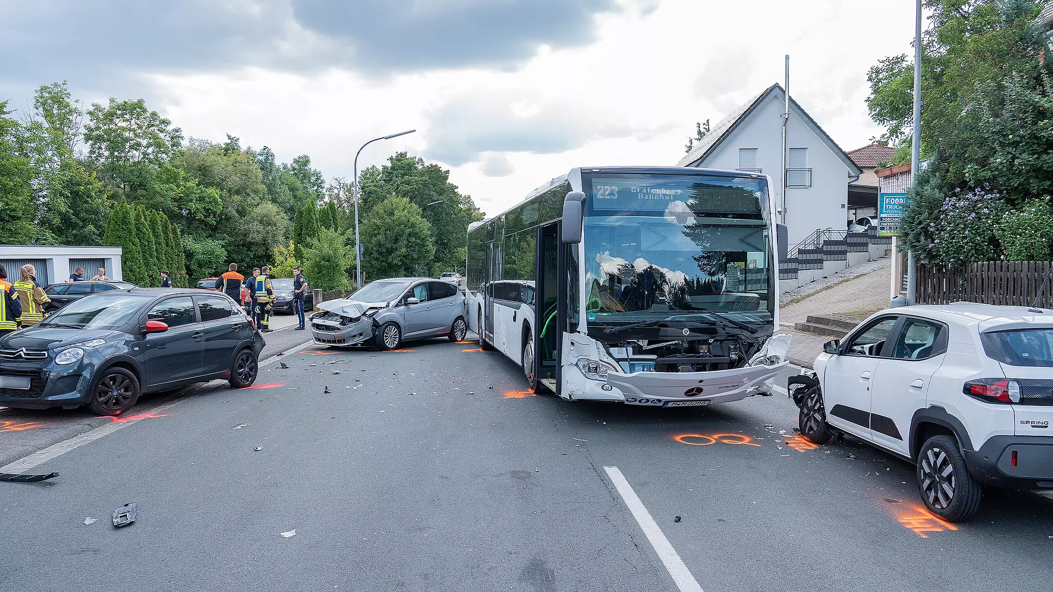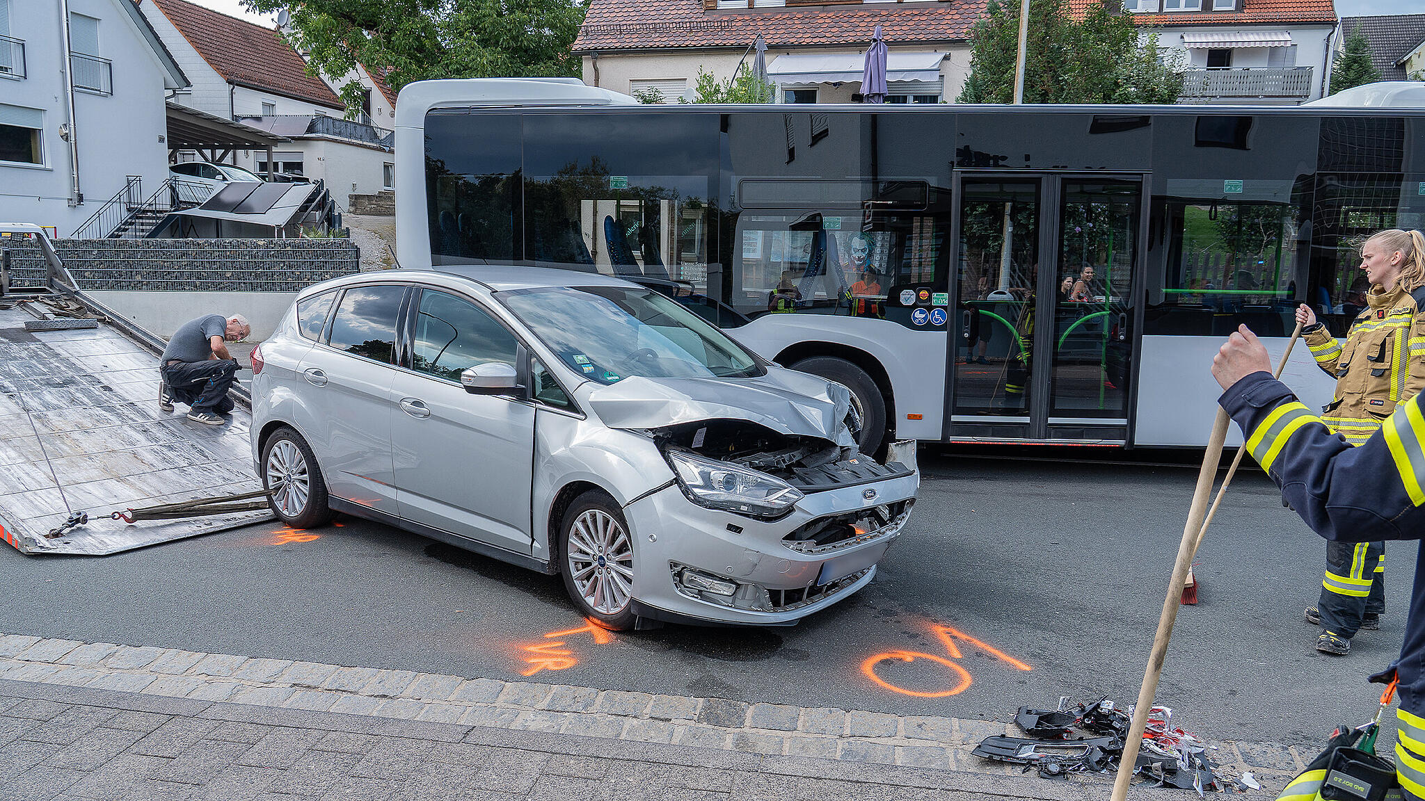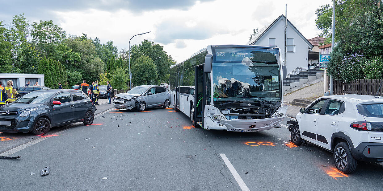 Von der Kupplung gerutscht Rentner kracht in Forchheim mit Auto in Linienbus Ein Rentner ist in Forchheim Reuth mit seinem Auto in einen Linienbus gefahren. // Foto: News5/Ferdinand Merzbach von Redakion TEILEN  22.08.2025 Forchheim – Ein 84-jähriger Autofahrer ist am Donnerstagnachmittag in Forchheim mit seinem Auto in einen Linienbus mit mehreren Insassen gefahren. Damit löste der Rentner eine Kettenreaktion aus. Artikel anhören Sie können uns nicht hören? Diese Funktion können Sie exklusiv mit PLUS nutzen. Erhalten Sie uneingeschränkten Zugriff auf alle Audioinhalte, Artikel und vieles mehr. Vorlesefunktion freischalten Bereits -Zugriff? Jetzt Anmelden Zu einem schweren Unfall mit glimpflichem Ausgang ist es am Donnerstag, 21. August 2025, im Forchheimer Stadtteil Reuth gekommen. Nach ersten Informationen der Nachrichtenagentur News5 wollte hier am Nachmittag ein 84-Jähriger mit seinem Fahrzeug von einem Parkplatz der VR-Bank auf die Reuther Straße einfahren. Insgesamt waren mehrere Fahrzeuge in den Unfall verwickelt. // Foto: News5/Ferdinand Merzbach Zunächst stand die Vermutung im Raum, dass der Mann Gas- und Bremspedal verwechselt habe. Wie die Polizei am Folgetag nun mitteilt, ist der 84-Jährige von der Kupplung gerutscht. // Foto: News5/Ferdinand Merzbach Unfall in Forchheim: Auto kracht in Linienbus in Reuth Wie die Polizeiinspektion Forchheim am Freitag meldet, wollte ein älterer Herr aus dem Parkplatz der VR-Bank herausfahren. Dabei rutschte er von der Kupplung ab und fuhr in den Verkehr. Ein bevorrechtigter Linienbus, welcher auf der Reuther Straße in östliche, stadtauswärtige Richtung unterwegs war, musste in den Gegenverkehr ausweichen. Dabei stieß der Linienbus aber dennoch mit dem Pkw des älteren Herren sowie einem Dacia im Gegenverkehr zusammen. Das Fahrzeug des älteren Herren wurde in einen unbesetzten, geparkten Pkw geschleudert. Dadurch losgerissene Teile beschädigten ein weiteres geparktes Auto. Aufgrund des Unfalls staute sich der Verkehr in den umliegenden Straßen. So schlängelten sich die Autos beispielsweise durch die Georg-Kaffer-Straße nahe der Reuther Schule. Der Verkehr staute sich in den umliegenden Straßen. // Foto: Karin Hühnlein Der Busfahrer und der 84-jährige Unfallverursacher wurden leicht verletzt ins Klinikum Forchheim gebracht. Der Fahrer des entgegenkommenden Dacia wurde ebenfalls leicht verletzt, musste aber nicht ins Klinikum. Die sechs Insassen des Stadtbusses kamen mit dem Schrecken davon und blieben unverletzt. Laut Angaben der Polizei am Freitag beläuft sich der Gesamtschaden auf rund 85.000 Euro. Am Donnerstag war zunächst von 100.000 Euro Schaden die Rede gewesen. Mordprozess ohne Leiche Zeugen im Fall Katina K: Wie tickt der Angeklagte Joseph H? Am 17. Prozesstag im Mordprozess um Katina K. variieren die Beschreibungen über den Angeklagten Joseph H. – und eine Zeugin will Katina K. noch am Tag ihres Verschwindens gesehen haben. UPDATE Opfer war der Polizei bekannt Leiche in Ebermannstadt gefunden: Das ist die Todesursache Vergangene Woche fanden Passanten in Ebermannstadt eine Leiche am Skatepark. Die Kripo ermittelt nun zum Todesfall, dabei ist das Opfer in der Stadt bekannt. Mordprozess ohne Leiche Katina K: Wirtin berichtet brutale Details über Angeklagten 16. Verhandlungstag am Landgericht Bamberg im Mordprozess ohne Leiche: Eine ehemalige Wirtin bringt im Fall um das Verschwinden der Sexarbeiterin Katina K. Schockierendes ans Licht.