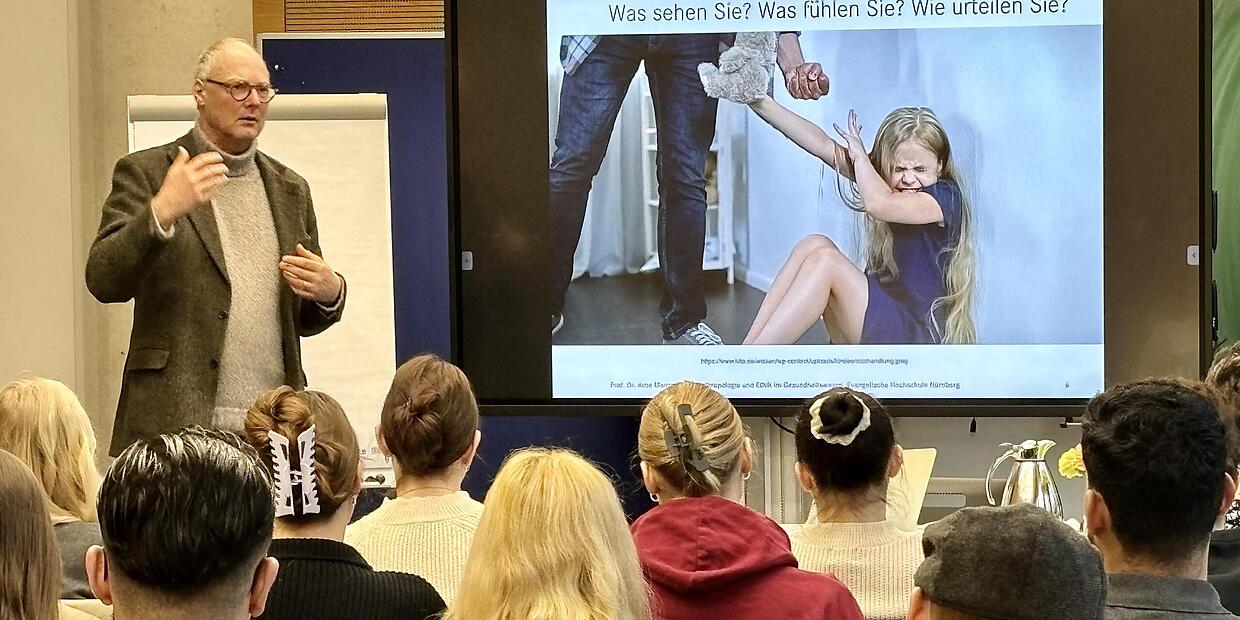 Gesundheit Seminar am Klinikum Forchheim: Ethische Fragen in der Pflege Anthropologe und Ethiker Prof. Arne Manzeschke führte durch das Seminar am Klinikum in Forchheim. // Andreas Schneider von Redaktion TEILEN  05.03.2024 Forchheim – 30 Azubis zur Pflegefachfrau respektive zum Pflegefachmann konnten im Seminar von Professor Manzeschke am Klinikum Forchheim-Fränkische Schweiz mehr erfahren über die ethischen Herausforderungen in ihrem Beruf. Professionelle Pflegekräfte erzielen mit hoher Fachkompetenz, Einfühlungsvermögen und ethischer Verantwortung täglich beeindruckende Erfolge bei der Förderung und pflegerisch-medizinischen Betreuung hilfsbedürftiger Menschen, und darauf sind sie zu Recht stolz, wie es in einer Pressemitteilung des Ausbildungsverbunds Pflege der Region Forchheim heißt. Dass dabei ständig auch Entscheidungen zu moralisch-ethischen Aspekten zu treffen sind, liege auf der Hand. Der Ausbildungsverbund betont daher die Notwendigkeit zur ständigen Entwicklung ethischer Kompetenz während der Ausbildung in den Pflegeberufen und unterstützt dazu ein Seminar am Klinikum Forchheim-Fränkische Schweiz. Die 30 Azubis zur Pflegefachfrau respektive zum Pflegefachmann sahen auf dem Monitor Fotos von verstörenden Situationen: ein Gelände in Asien, auf dem Seltene Erden abgebaut werden; eine riesige Fläche Müll, soweit das Auge reicht; die Überreste eines Waldes nach einem Brand und ein Kind, welches sich auf dem Boden vor der Gewaltandrohung eines Erwachsenen zu schützen versucht. Die Teilnehmer waren aufgerufen, zu den Bildern drei leitenden Fragen nachzugehen, wie sie sich auch für die Diskussion moralisch-ethischer Aspekte im Pflegealltag anbieten: „Was sehe ich? Was fühle ich? Wie urteile ich?“ Experte kennt das Spannungsfeld Durch das Seminar führte der Anthropologe und Ethiker Prof. Arne Manzeschke. Er leitet u.a. das Institut für Pflegeforschung, Gerontologie und Ethik an der Evangelischen Hochschule Nürnberg. Er kennt das Spannungsfeld, in dem sich Ärzte und Pflegekräfte in der Praxis oft befinden, aus seiner Erfahrung, wie es in der Mitteilung weiter heißt. Mit seiner Unterstützung bekamen die jungen Menschen eine konkrete Idee davon, dass jeder Mensch über Moralvorstellungen verfügt, die er nicht erst lernen muss, und dass diese der Ausgangspunkt für ein moralisches Urteil („Das ist schlecht“, „Da hat jemand Schuld auf sich geladen“) sein können. Mit diesem „Affekt“ könne dann ein strukturierter Dialog über die ethischen Aspekte einer Pflegesituation mit allen Beteiligten erfolgen und eine konkrete Entscheidung herbeigeführt werden. Manzeschke: „Dialog im Team hilft zur Klärung – und Dialog braucht Zeit.“ Und es wurde reichlich diskutiert – an Praxisbeispielen herrschte kein Mangel. Ein Auszubildender schilderte die Situation eines Menschen mit Demenz, den er im Seniorenzentrum betreute. Er fragte sich, ob die Art der Kommunikation mit diesem Bewohner ethisch verantwortbar war. Es zeigte sich schnell, dass erst eine saubere, wertfreie Analyse der Situation nötig ist und dass es leider oft zu rasch auf die Frage „Was ist in diesem Fall gut und richtig?“ verschiedene Antworten gibt. Auch Robotik und KI sind ein Thema Auch die technischen Themen zur Zukunft der pflegerischen Versorgung wurden aus ethischer Perspektive beleuchtet. Robotische Assistenzsysteme und künstliche Intelligenz würden aktuell im Rahmen von Projekten in der Pflegepraxis eingesetzt und fortlaufend evaluiert. Welche „ethischen Leitplanken“ erfordert das? Andreas Schneider, Vorstand des Ausbildungsverbunds und Schulleiter der Berufsfachschule für Pflege am Klinikum Forchheim, resümiert den Tag: „Wir haben heute ein richtig kompliziertes und so wichtiges, emotionsgeladenes Thema behandelt. Es ist zu spüren, dass es die Auszubildenden in der Pflege mit Stolz erfüllt, im Prozess der ethischen Entscheidungsfindung mitzusprechen und ein gefragter Experte zu sein. Pflege ist eben viel mehr als eine bloße Dienstleistung und deshalb so bereichernd.“ Lesen Sie auch: Klinikum Forchheim Krankenhausfinanzierung gefährdet Versorgung auf dem Land Die Finanzierung der Krankenhäuser ist zunehmend eine Herausforderung. Auf Einladung der Bundestagsabgeordneten Silke Launert haben die Spitzen der Kliniken Forchheim und Bayreuth das Thema diskutiert. Pflegetag am Klinikum Junge Menschen lernen die Ausbildung in der Pflege kennen Wie sieht die Arbeit von Pflegekräften am Klinikum Forchheim-Fränkische Schweiz aus? Das erfuhren Interessierte hautnah und konnten so herausfinden, ob sie sich selbst in dem Beruf sehen. Neue Studie Enormer Zuwachs an Pflegebedürftigen im Regnitztal Ein Monitoring zum Pflegepersonalbedarf prognostiziert Bayern noch in diesem Jahrzehnt einen kritischen Kipppunkt. Auch in Forchheim und Erlangen hat der Pflegebedarf überdurchschnittlich zugenommen.