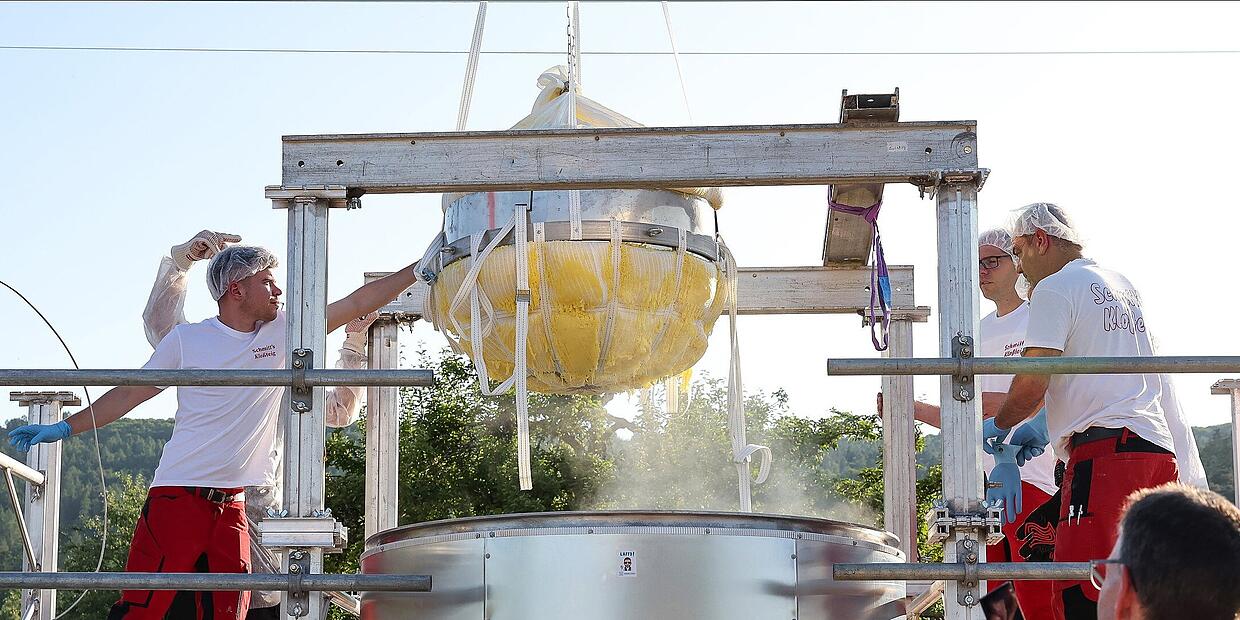 Kloßfirma bei Forchheim Größter Kloß der Welt: Dank oberfränkischem Teig zum Rekord Foto: Daniel Löb/dpa von Stephan Großmann von Sabine Memmel TEILEN  23.06.2025 Heroldsbach – 465 Kilogramm schwer war der Rekord-Kloß, der im unterfränkischen Wombach gekocht wurde. Der Teig dafür stammt aus Heroldsbach. Wie sich Schmitt's Kloßteig anderthalb Jahre auf die Sensation vorbereitete. Artikel anhören Sie können uns nicht hören? Diese Funktion können Sie exklusiv mit PLUS nutzen. Erhalten Sie uneingeschränkten Zugriff auf alle Audioinhalte, Artikel und vieles mehr. Vorlesefunktion freischalten Bereits -Zugriff? Jetzt Anmelden Na, erwischt! Du bist wohl ein bisschen zu neugierig, was?