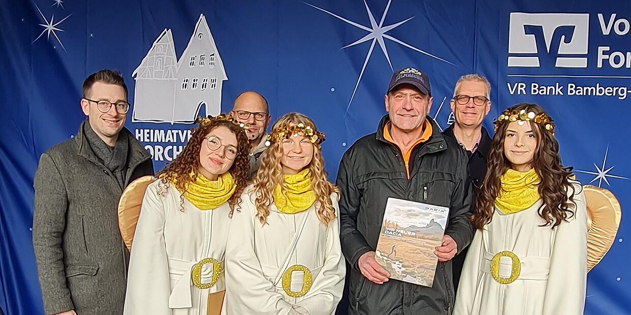 Das ist der Gewinner Digitaler Adventskalender: Hauptpreis geht nach Effeltrich Über den Hauptgewinn des diesjährigen digitalen Adventskalenders, nämlich ein neues Auto, darf sich Geo Derrfuß aus Effeltrich freuen. Von links: 1. Vorsitzender Heimatverein Forchheim Nico Cieslar, Engel Karolin, Vorstand der VR-Bank Bamberg-Forchheim Alexander Brehm, Engel Arven, Gewinner Geo Derrfuß, Oberbürgermeister Forchheim Dr. Uwe Kirschstein, Engel Annabelle // Stadt Forchheim/ Tourismusmanagement von Redaktion TEILEN  24.12.2024 Forchheim – Pünktlich um 12 Uhr wurde das letzte Los des diesjährigen digitalen Adventskalenders gezogen. Der Hauptgewinn und damit ein brandneues Auto geht in diesem Jahr nach Effeltrich. 26 Tage Weihnachtsmarkt sind vorüber und das 24. Türchen am digitalen Adventskalender der Kaiserpfalz wurde traditionell am Heiligabend um 12 Uhr geöffnet. Das letzte Los der Weihnachtslotterie durfte der Forchheimer Weihnachtsengel Annabelle ziehen. Der diesjährige Hauptpreis, ein Dacia Sandero in Höhe von 15.745 Euro, geht an Herrn Geo Derrfuß, darüber informiert das Tourismusmanagement in einer Pressemitteilung. Adventskalender Forchheim: Teil des Erlöses geht an Annafest Der dolomitgraue Flitzer wurde vom Hauptsponsor der VR Bank Bamberg-Forchheim, Auto-Kraus Erlangen und dem Heimatverein Forchheim, dem Veranstalter der Weihnachtslotterie, zur Verfügung gestellt. Insgesamt wurden in diesem Jahr 35.000 Lose verkauft. Den Erlös aus dem Losverkauf verwendet der Heimatverein Forchheim unter anderem für Zuschüsse im kulturellen, künstlerischen, wissenschaftlichen, denkmalhistorischen und stadtbildpflegenden Bereich und für verschiedene wohltätige Zwecke – in diesem Jahr insbesondere für den großen Annafestzug 2025. Lesen Sie auch: Lichterprozession 2024 Die schönsten Fotos: Oberailsfeld wird zum Lichtermeer Mit der traditionellen Lichterprozession wurde in Oberailsfeld die Ewige Anbetung gefeiert. Die schönsten Impressionen von dem Spektakel in der Fränkischen Schweiz. Täglich Vorstellung Manege frei für den Forchheimer Weihnachtszirkus Schon zum fünften Mal gastiert der „Wonderful Christmas Circus“ der Artistenfamilie Renz in Forchheim. Am Freitag begeisterte er sein Publikum bei der Premiere. Worauf sich Familien freuen können. GUTE NACHRICHT Einstimmung auf Weihnachten Wie putzig: Bescherung für Tiere im Wildpark Hundshaupten Bei kühlen Temperaturen lud der Wildpark Hundshaupten am Sonntag zu einem besonderen Erlebnis ein: Kinder hatten die Möglichkeit, Leckereien für die Tiere aus Obst und Gemüse selbst zu basteln. Unbekannte stiften Bäume Nun also doch: Weihnachtsbäume für Forchheimer Stadtteile Eigentlich sollte es in den Forchheimer Stadtteilen wegen des Haushaltslochs keine Weihnachtsbäume geben. Nun haben Unbekannte in einer Guerilla-Deko-Aktion selbst welche aufgestellt.