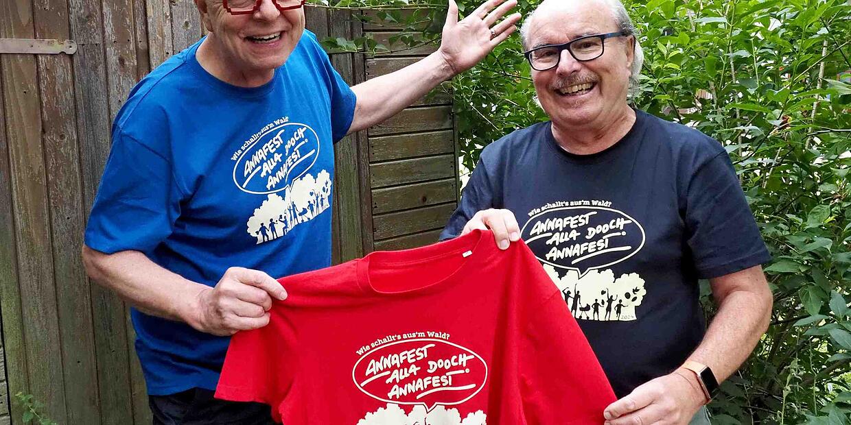 Ein Muss für Fans Das neue Annafest-T-Shirt ist da Atze Bauer und Ulli Raab präsentieren das neue Annafest-T-Shirt // Ulli Raab von Redaktion TEILEN  08.07.2024 Forchheim – Ulli Raab, der King Alladooch, präsentiert das neue Annafest-T-Shirt 2024, das mit einem besonderen Motto begeistert. Was dahinter steckt und wo es erhältlich ist. Unter dem Motto "Wie schallt´s aus´m Wald?" gibt es auch 2024 wieder ein neues Alladoch Annafest-T-Shirt. Seit 1993 lässt Ulli Raab - bekannt als King Alladooch - seinen Slogan "Annafest Alla Dooch Annafest" jedes Jahr mit einem aktuellen Motiv bei seinem Freund Atze Bauer in Höchstadt auf T-Shirts drucken. Das Annafest ist für ALLE da Das diesjährige Annafest T-Shirt steht ganz im Zeichen der fränkischen Feierkultur. Das Annafest ist ein Fest, das jeder, ob Jung oder Alt auf seine Weise genießen kann. Für jeden ist etwas geboten, jeder findet sein Plätzchen im einzigartigen Ambiente des Forchheimer Kellerwaldes. Die kleine Taube auf dem T-Shirt, die der Junge mit den Ballons hält, gibt dem Wunsch nach Frieden und Friedlichkeit Ausdruck. Damit alle - auch gerne "alla Dooch" - ihr Annafest feiern können. Das T-Shirt kann bereits bestellt werden im Webshop von Atze Bauer: hier. https://shop.t-shirt-drucker.de/produkt/annafest-t-shirt-2024/ .Der Link ist auch zu finden auf www.annafest.com. Online bestellen oder in der Innenstadt erhältlich Im Shop gibt es das Shirt in den Farben marineblau und royalblau als Damen- und Herren-Shirt. Die bestellten und vorab bezahlten Shirts werden entweder per Post geliefert oder sie können - nach Benachrichtigung - im s.Oliver Store in Forchheim (Hauptstr. 53) selbst abgeholt werden. Bei Selbstabholung entfallen die Versandkosten. Auch gibt es ab nächster Woche das Annafest-T-Shirt wieder in vielen Farben in Forchheim in der Tourist-Info (Kapellenstraße 16), im "Lübbis" (Apothekenstr. 10) und am Forchheimer Bahnhof im DB ServiceStore (Bahnhofsplatz 9). Während des Annafestes ist das Annafest-T-Shirt zudem am Rappen-Keller und am Stäffala-Keller zu erwerben. Lesen Sie auch: Fränkisches Kellerduell Alles falsch bei den Forchheimer Bierkellern? Von wegen! Der Seniorchef des „Entla’s Keller“ in Erlangen lässt bei seinen Kellerführungen kein gutes Haar an den Forchheimer Bierkellern. Doch dem widersprechen jetzt zwei Experten aus Forchheim. Das Annafest kann kommen Die neuen Pächter des Schlößla-Kellers stehen fest Lange war unklar, ob und von wem der Schlößla-Keller zum diesjährigen Annafest betrieben wird. Jetzt melden sich die neuen Pächter zu Wort – und sie sind keine Unbekannten. Limitierte Stückzahl Das ist das Annafest Krügla 2024 Wie jedes Jahr gibt es zum Annafest extra gestaltete Krüge in begrenzter Auflage. Was hinter dem Motiv steckt und wo die Krüge erhältlich sind. UPDATE Alle Infos im Überblick Annafest 2024: Das Musikprogramm steht Bald geht es wieder los im Forchheimer Kellerwald. Jetzt steht fest, auf welche Bands sich Besucher in diesem Jahr beim Annafest freuen dürfen. Ermäßigungen fürs Annafest 250 Gutscheine: Der Ferienpass ist da Über 250 Gutscheine und spannende Angebote warten auf Kinder und Jugendliche bis 18 Jahren im neuen Ferienpass 2024. Ab sofort ist dieser in vielen Städten, Märkten und Gemeinden im Landkreis Forchheim erhältlich.