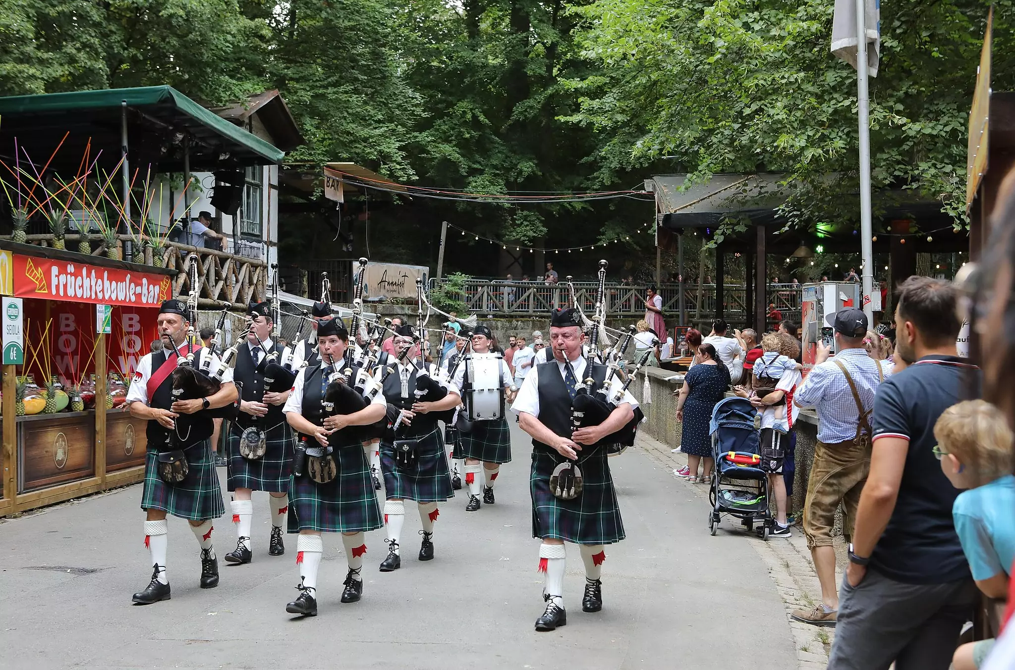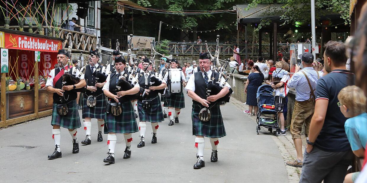 Gelebte Tradition Annafest: Beim Umzug war die Stimmung prächtig Auch Dudelsack-Klänge der Glen Regnitz Pipe Band waren am Samstag beim Festzug im Kellerwald zu hören. // Barbara Herbst von Liliana Wopkes TEILEN  24.07.2022 Forchheim – Wegen der gesperrten Piastenbrücke ging es in einer kurzen Route hinauf in den Kellerwald zum Annafest. Der Begeisterung tat dies keinen Abbruch. Manches ist vertraut, vieles aber ganz anders beim diesjährigen Festumzug. Einen ordentlichen Strich durch die Rechnung hat den Veranstaltern in diesem Jahr hauptsächlich die (fehlende) Piastenbrücke gemacht. Deswegen ist die geplante Route anders, vor allem deutlich kürzer. Start und genauer Routenverlauf nicht jedem klar Allmählich versammeln sich die Annafest-Besucher, viele wollen den Umzug sehen, wissen aber nicht, wo er genau startet oder welche Route er nehmen wird. Also warten die meisten beim unteren Parkplatz, denn „hier müssen sie ja durch“. Das hofft auch der achtjährige Jonas Pfeffermann, der mit seiner Familie vor dem Kettenkarussell steht. Allerdings könnte sich der Umzug, wenn es nach ihm ginge, schon noch etwas Zeit lassen, das Beobachten des Kettenkarussells ist gerade wichtiger. Aber Jonas hat durchaus etwas zu erzählen, er ist schließlich das älteste Geschwisterkind und kann sich somit an den letzten Annafest-Umzug erinnern. Damals ist er sogar mitgelaufen, beim Schützenverein. Jährlich wiederholende Familientradition In der Lichteneiche warten in der Zwischenzeit die Teilnehmerinnen und Teilnehmer des Festumzugs auf ihren Einsatz. Die Atmosphäre ist entspannt, das Wetter spielt mit, es ist schön, aber nicht zu heiß. Nach und nach finden sich immer mehr Zuschauer ein, so auch Wolfgang Badura mit seiner Familie und Verwandten aus München und Stuttgart, die extra zum Annafest gekommen sind. Dies ist das „Cousinentreffen“ seiner Frau, eine sich jährlich wiederholende Familientradition. Dann nämlich treffen sich die Cousinen mit ihren Ehemännern und machen eine gemeinsame Stadtreise, sie haben schon Leipzig, Dresden oder Wilhelmshafen besucht. Jetzt sollte es Forchheim sein, genauer, das Annafest. Auch Sohn Felix ist deswegen aus Flensburg gekommen, wo er auf dem besten Weg ist, ein Seebär zu werden. Felix studiert Nautik und wird in absehbarer Zeit Kapitän – ein Forchheimer auf den Weltmeeren. Diese hat er schon zum Teil bereist, jetzt also, zum Durchschnaufen, nicht Alexandria oder Port Said, sondern das Annafest. Schon oft „da mitgegangen“ Inzwischen setzt sich der Festumzug in Bewegung, die Lichteneiche entlang. Musik zieht an den Gärten der Anwohner vorbei, so auch am Grundstück der Familie Mauser. Vom geöffneten Fenster aus macht Herr Mauser Fotos, seine Frau aber möchte so nah wie möglich am Geschehen sein, direkt am Gartentor steht sie, glücklich und sehr traurig zugleich. 92 Jahre ist sie alt, man sieht es ihr nicht an. Nach einem Sturz ist sie auf den Rollator angewiesen, von Mitmachen beim Festumzug kann keine Rede mehr sein. Dabei ist sie so oft in ihrem Leben schon „da mitgegangen“. „Ach, was hab ich nicht schon alles gemacht …“, erzählt sie und kämpft gegen Trauer- und Erinnerungstränen. Im Frauenbund war sie, in der Tanzgruppe, es ist jetzt einsam um sie. Kondition ist gefragt Drumherum, wie das Leben so ist, steigt die Stimmung. Der Festumzug biegt auf die Untere Kellerstraße ein, mittendrin die Bürgermeister Kirschstein, Schönfelder und Prechtel, Landrat Ulm, die Stadträte. Und dann nehmen die Musiker einen tiefen Atemzug und machen sich an den Aufstieg, Kondition ist gefragt. Bergauf keine leichte Sache für die Festzug-Musiker: Hier feuern die Spieler des Musikvereins Forchheim-Buckenhofen die Pipe-Band an. // Barbara Herbst Ganz oben sitzen, gemütlich im Schatten Sascha Meßbacher und Antonia Rauh und lassen die roten Gesichter der jetzt Angekommenen an sich vorbeiziehen. Sie warten hier auf Antonias Freund Marcus Oepp, der mitgespielt hat. Anschließend werden sie gemeinsam etwas trinken, Freunde treffen. Direkt nebenan trinkt Landrat Hermann Ulm schon ein Riesenglas Saft. „Schön war“s“, sagt er, „endlich wieder.“ Lesen Sie auch: Die schönsten Fotos Freude pur: So war der Annafest-Umzug in Forchheim Darauf haben die Forchheimer so lange gewartet: Der Annafest-Umzug fand, wenn auch mit geänderter Route, wieder statt. Die schönsten Fotos. Klimaaktion Festspiel-Premiere: Kritiker besetzen Bäume Vor dem Start der Bayreuther Festspiele sind Aktivisten des «Klimabaumhauses Bayreuth» auf Bäume auf dem Gelände des Festspielhauses geklettert.