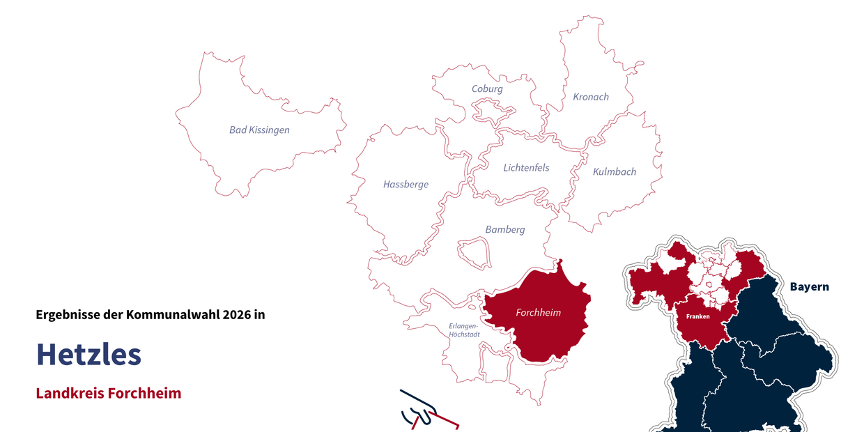 Bei der Kommunalwahl 2026 in Hetzles entscheiden die Wählerinnen und Wähler über die künftige Spitze im Rathaus und die Zusammensetzung des Gemeinderats. Die Bürgerinnen und Bürger von Hetzles sind am 8. März 2026 zur Kommunalwahl aufgerufen; auf dieser Seite finden Sie die jeweils aktuell gemeldeten Zwischenergebnisse der Auszählung.